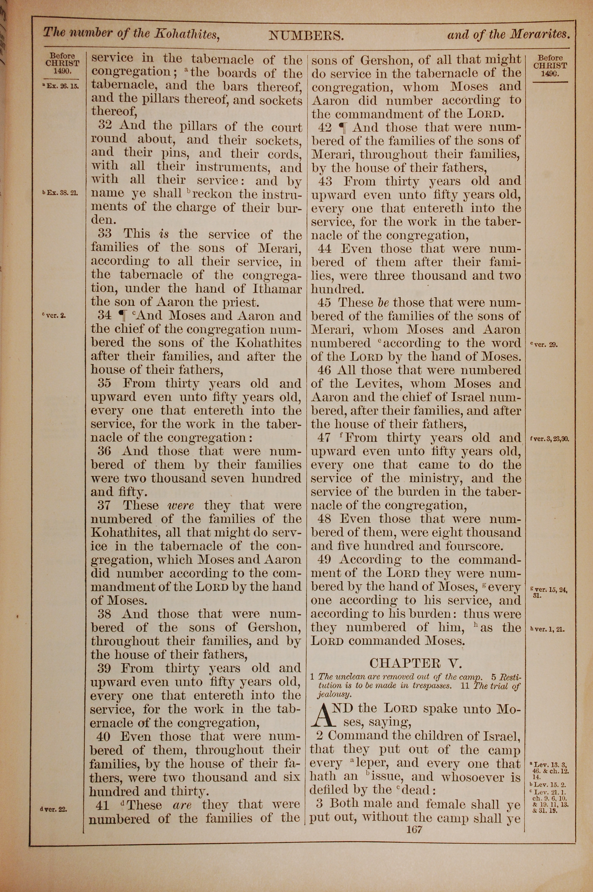 1882年Holy Bible 民数记 4 章 32 节到 5 章 3 节