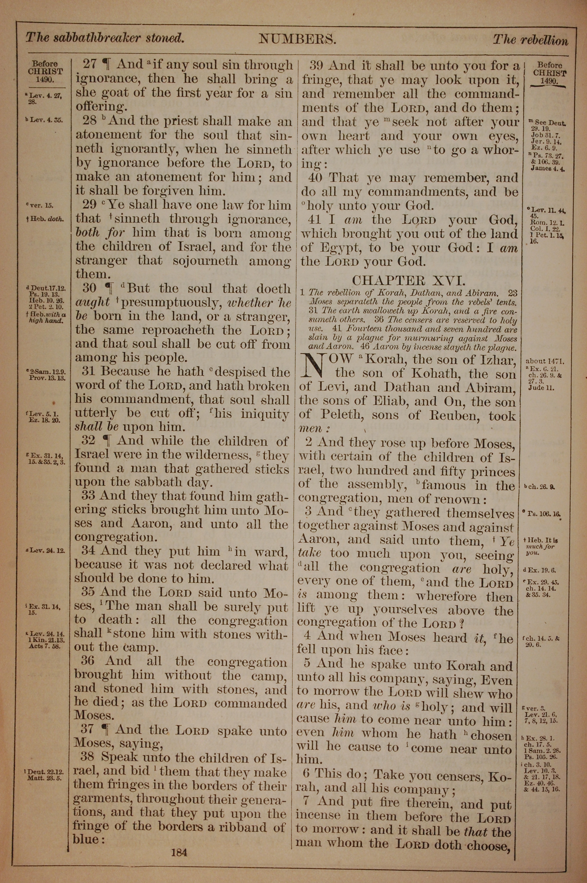 1882年Holy Bible 民数记 15 章 27 节到 16 章 7 节