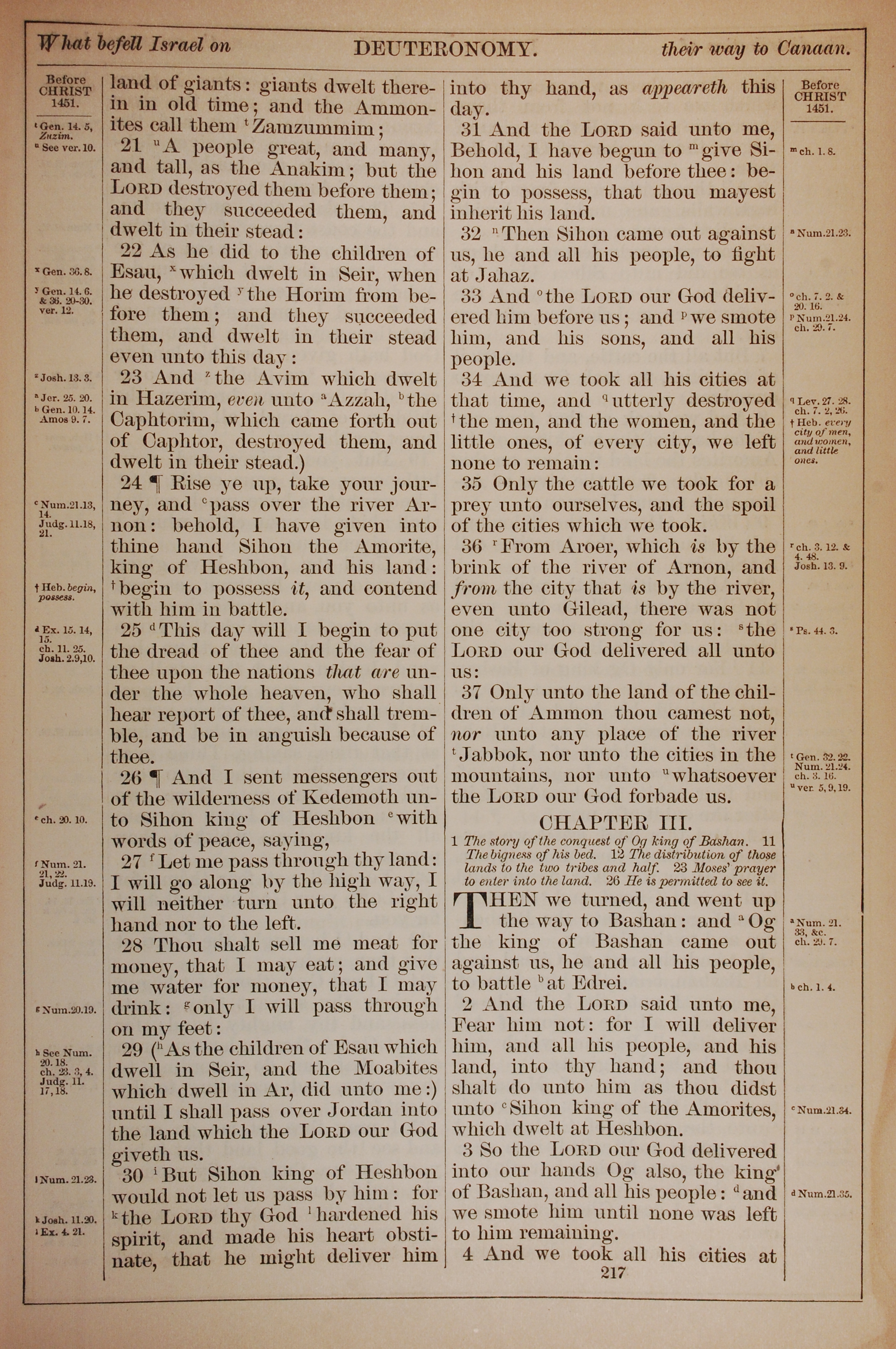1882年Holy Bible 申命记 2 章 21 节到 3 章 4 节