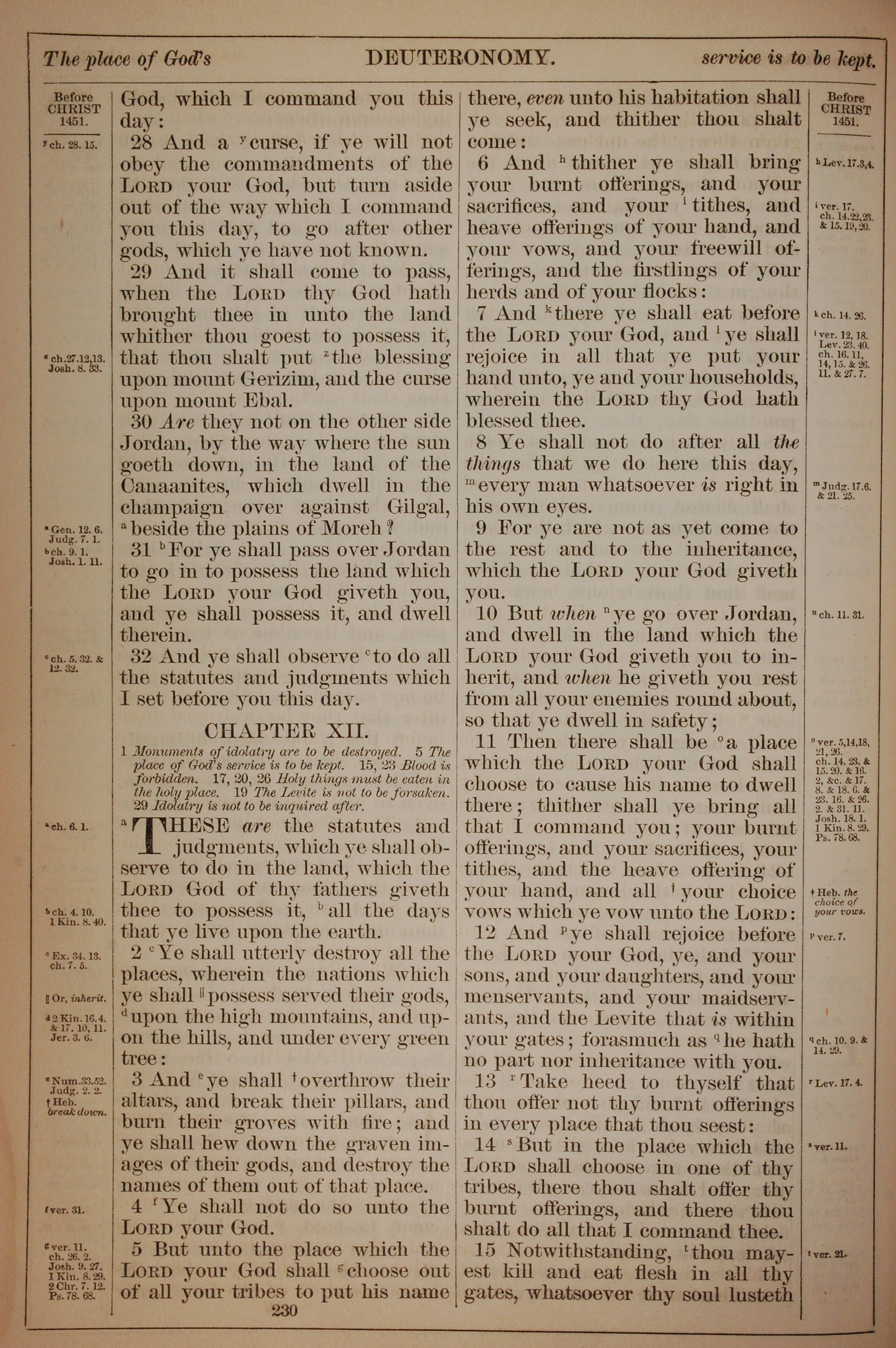 1882年Holy Bible 申命记 11 章 28 节到 12 章 15 节