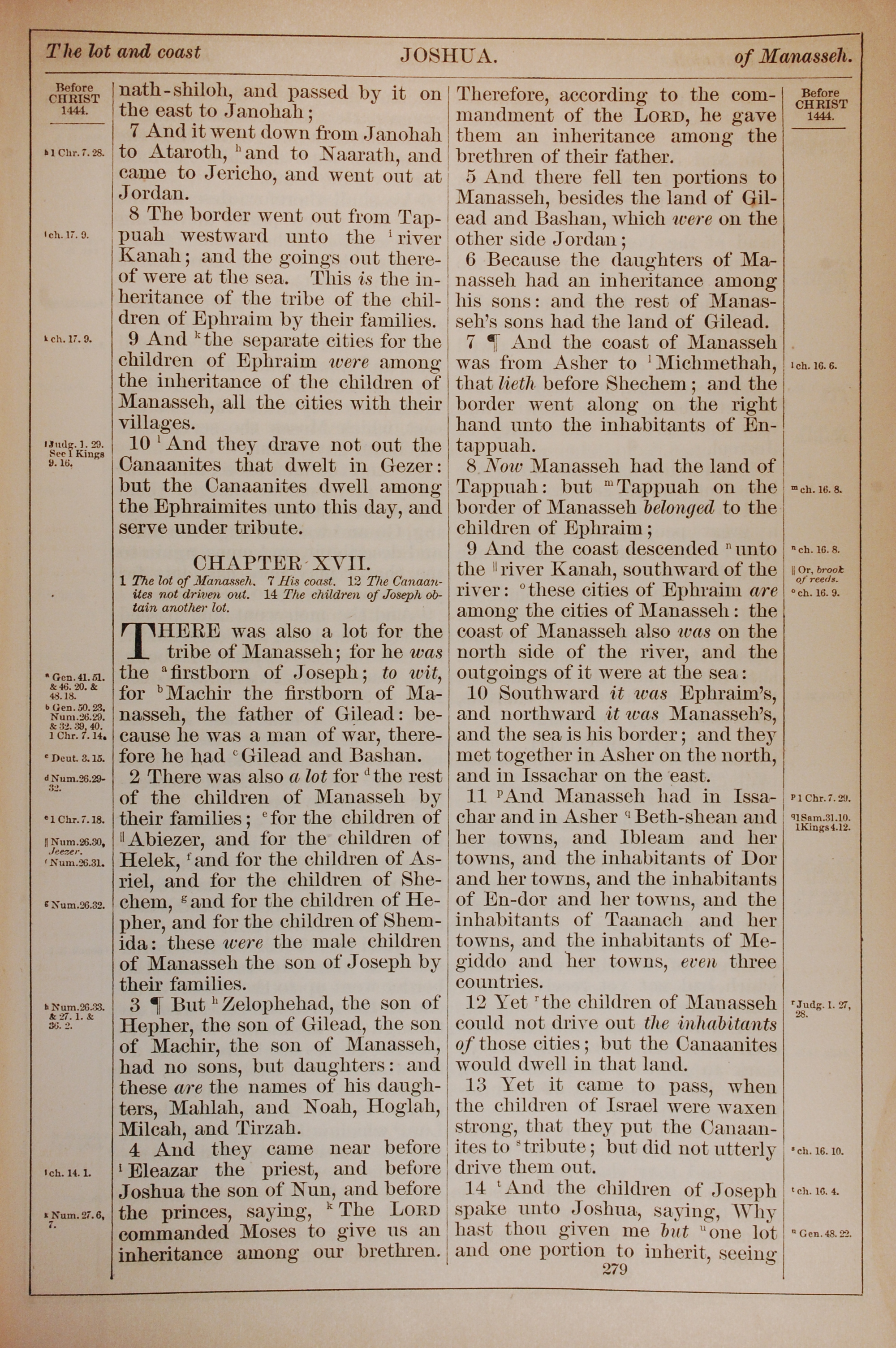 1882年Holy Bible 约书亚记 16 章 7 节到 17 章 14 节