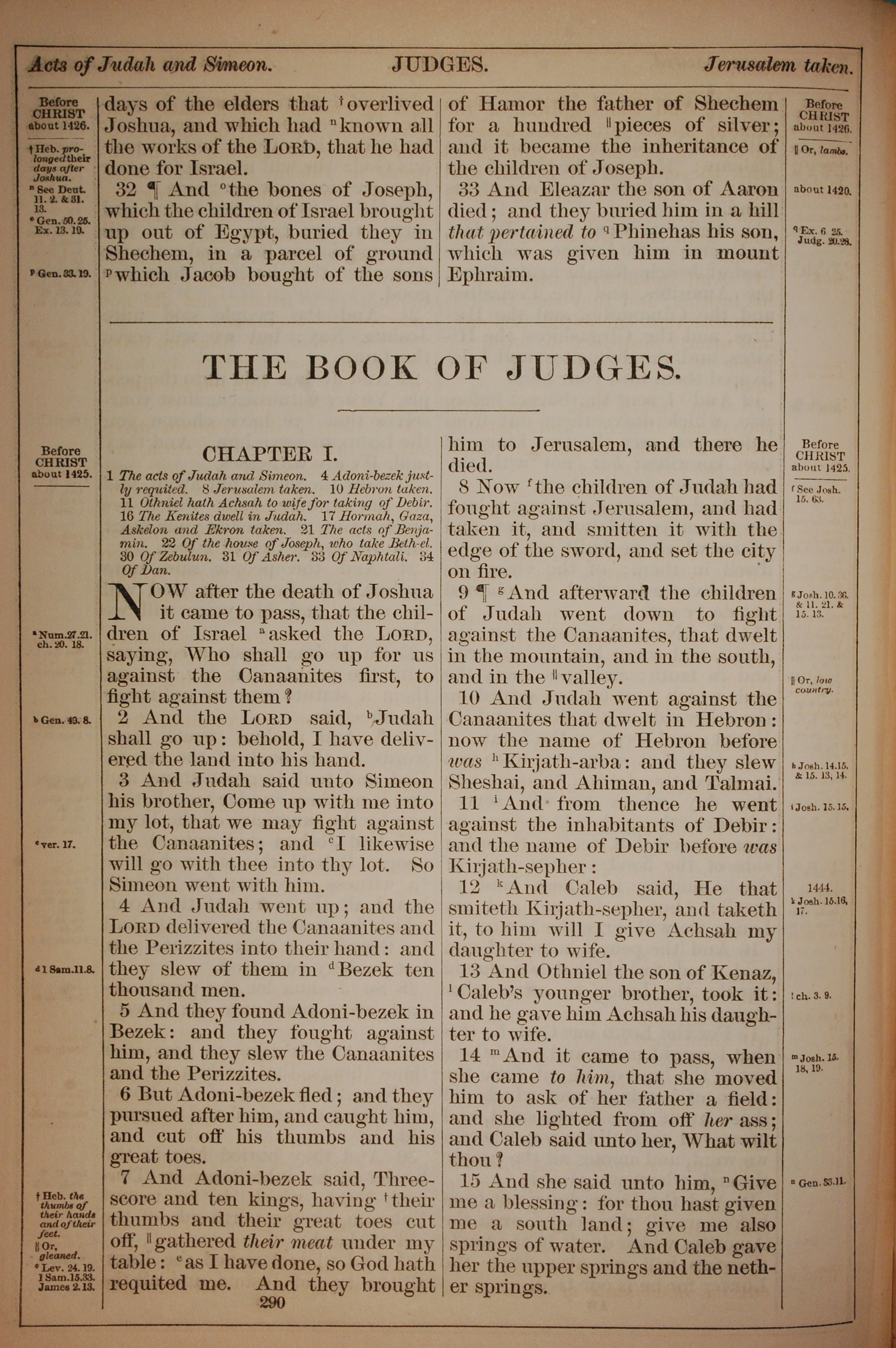 1882年Holy Bible 士师记 1 章 1 节到 1 章 15 节