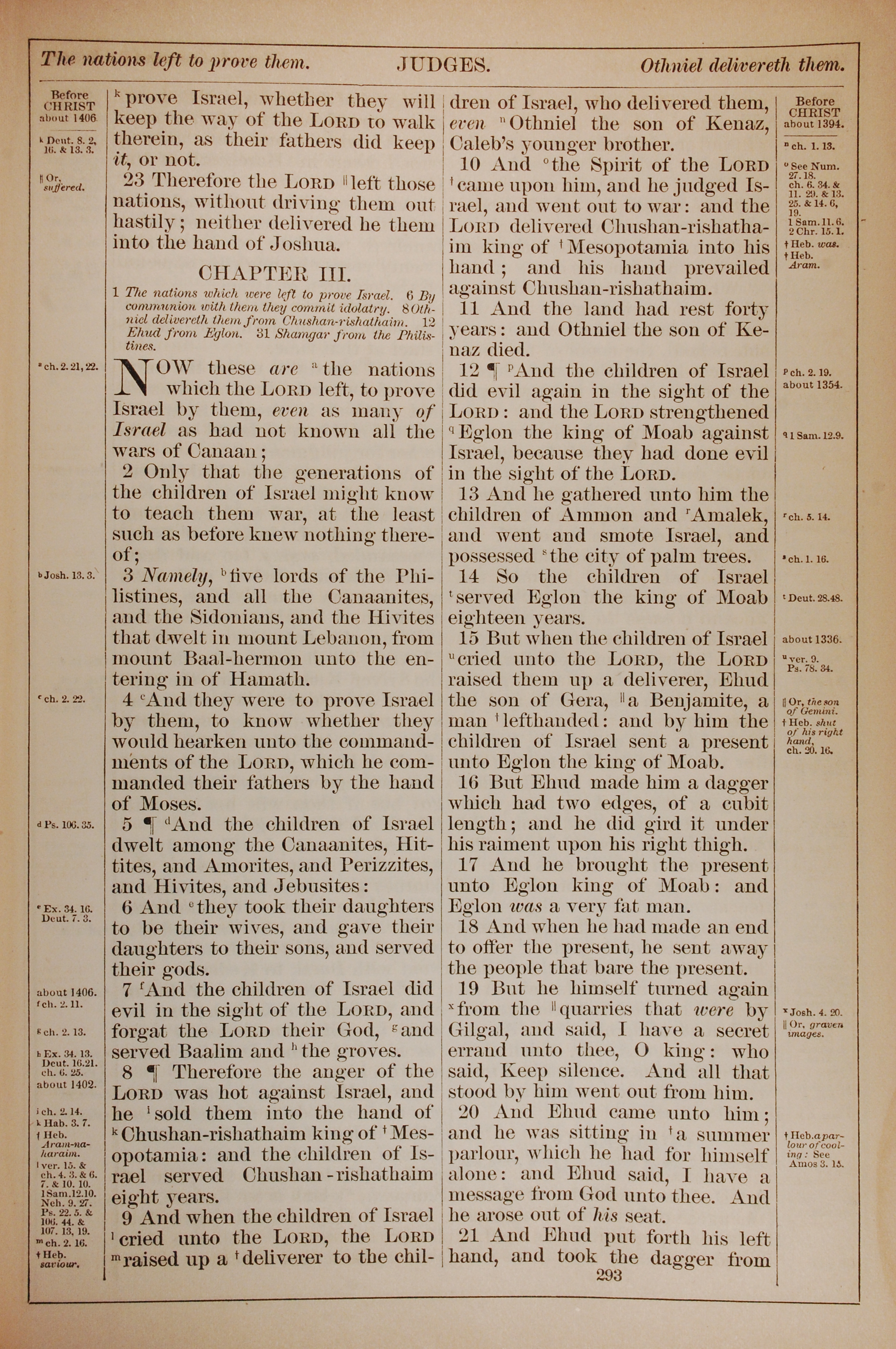 1882年Holy Bible 士师记 2 章 23 节到 3 章 21 节