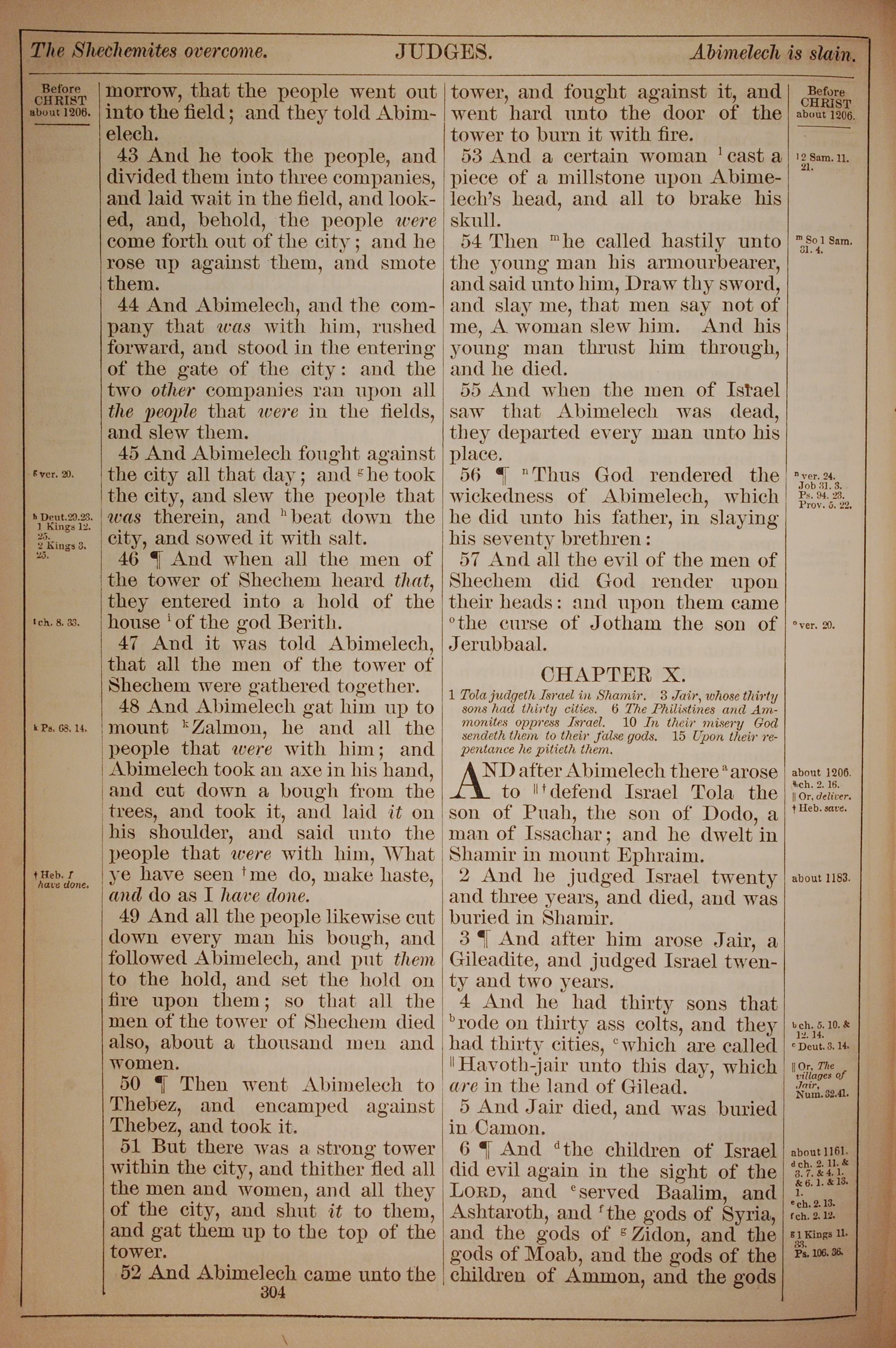 1882年Holy Bible 士师记 9 章 43 节到 10 章 6 节