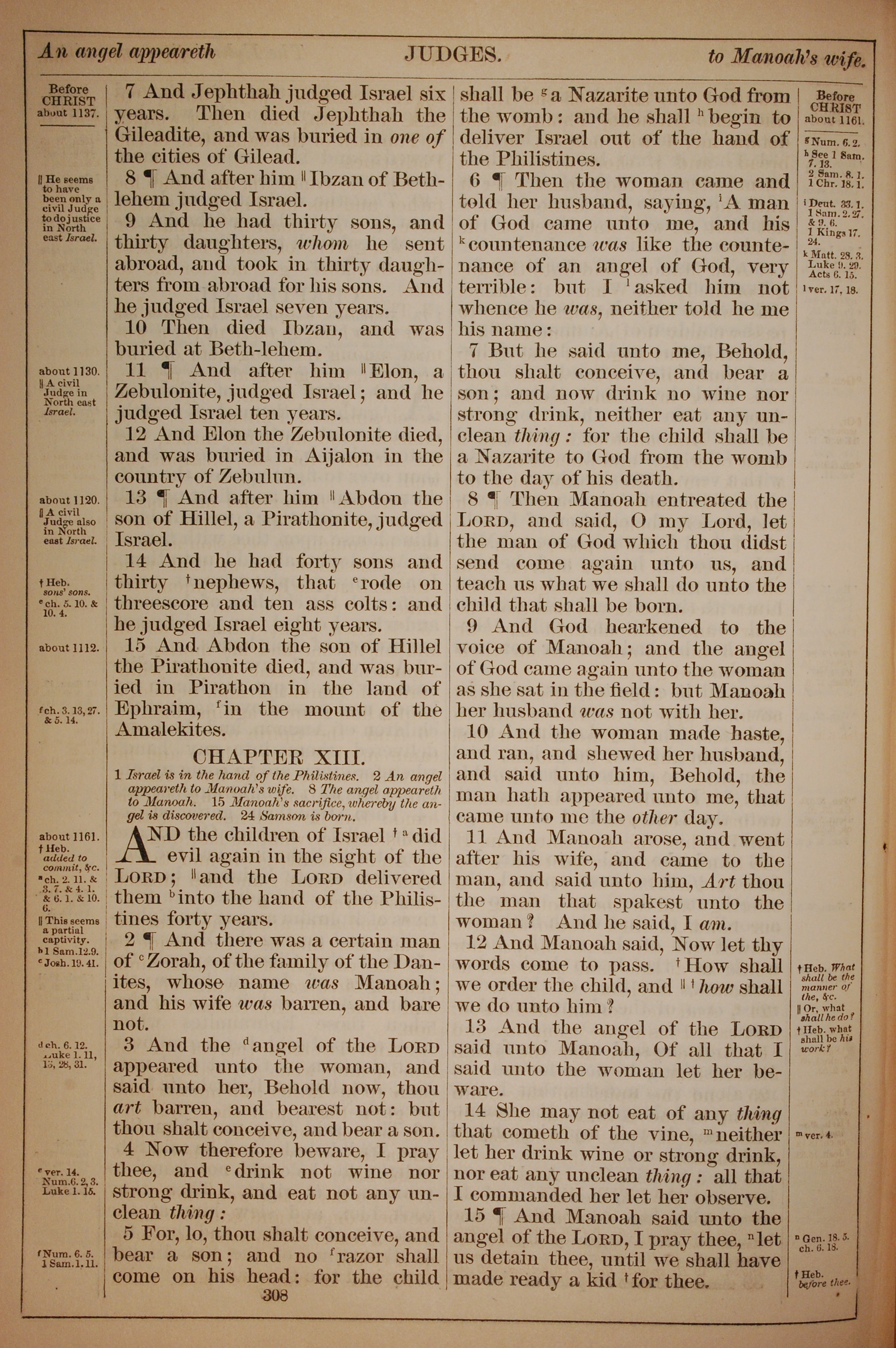 1882年Holy Bible 士师记 12 章 7 节到 13 章 15 节