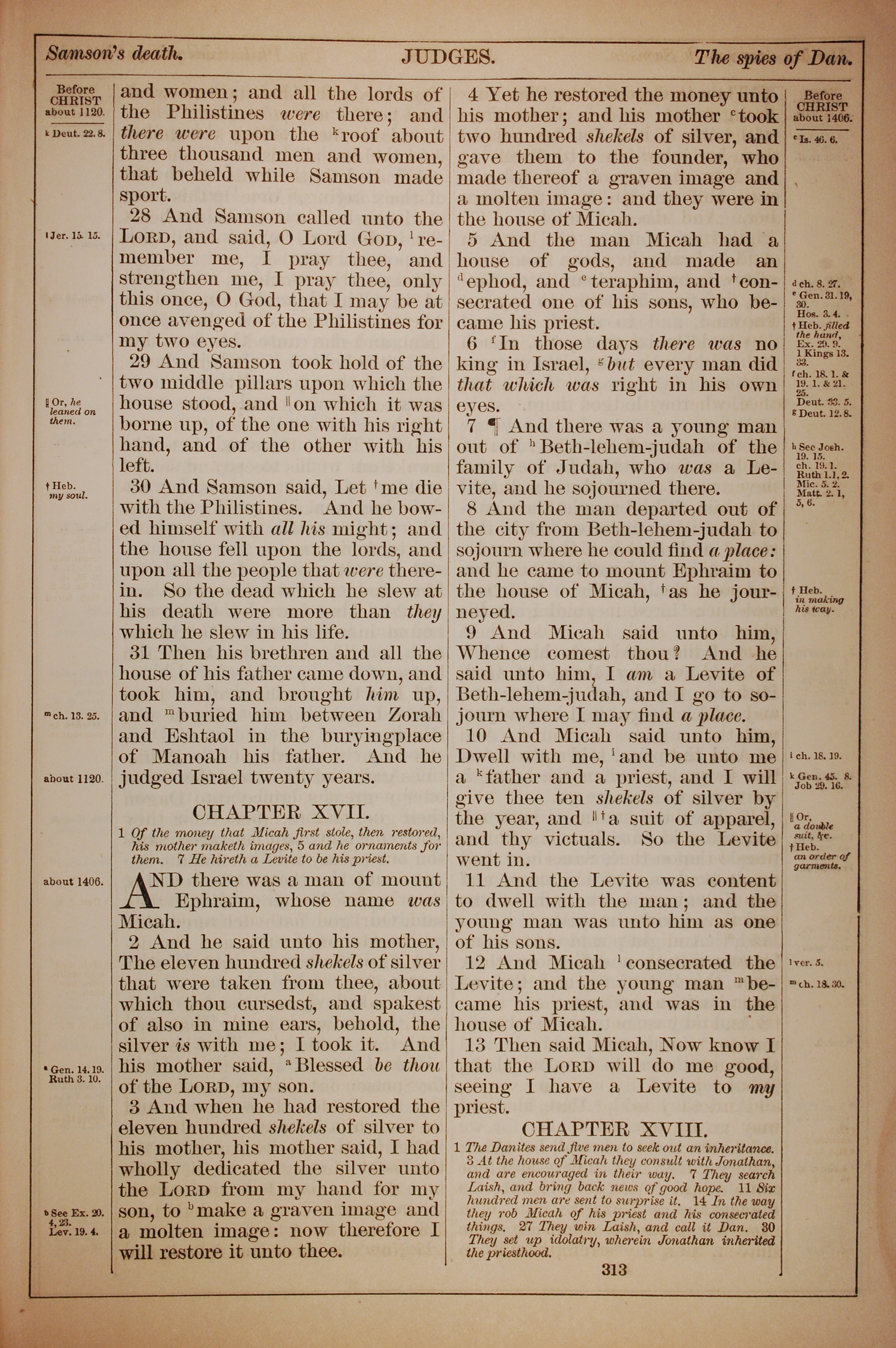 1882年Holy Bible 士师记 16 章 28 节到 17 章 13 节
