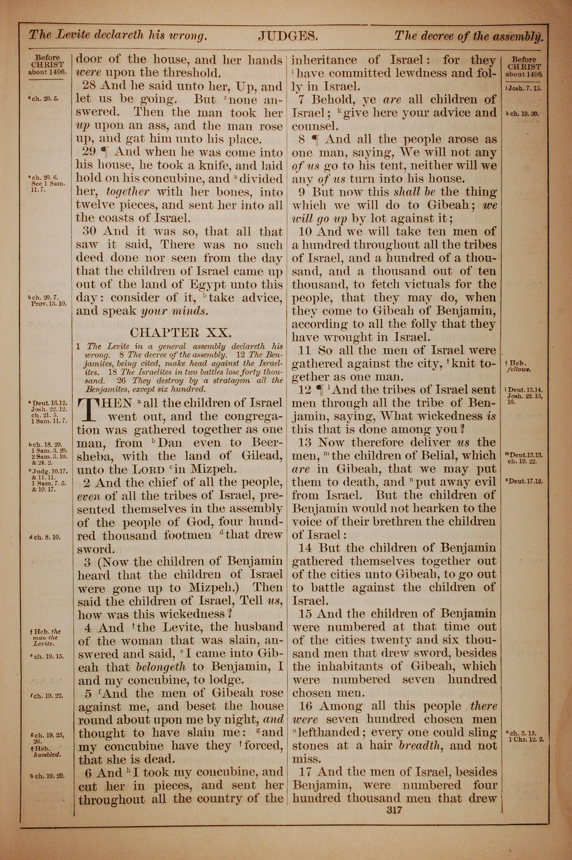 1882年Holy Bible 士师记 19 章 28 节到 20 章 17 节