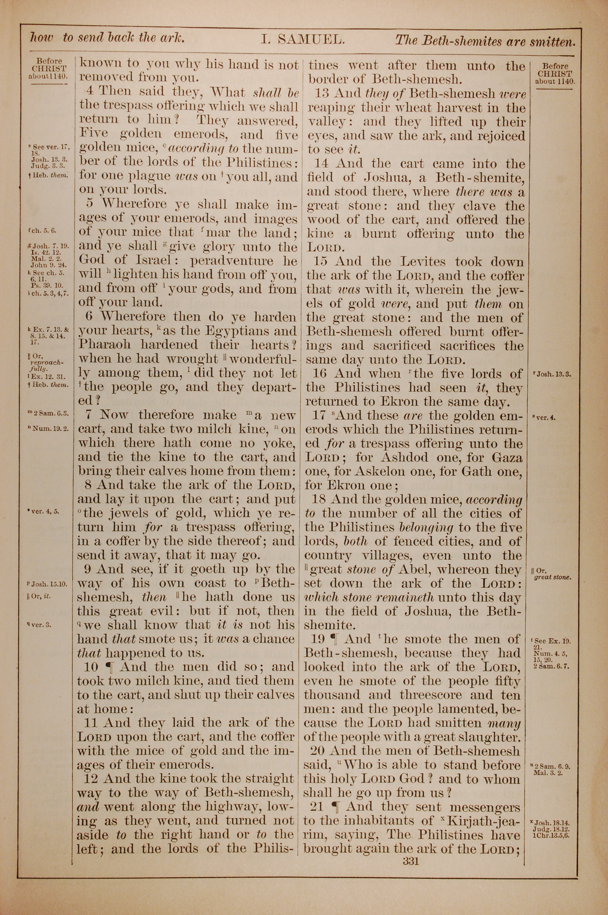 1882年Holy Bible 撒母耳记上 6 章 4 节到 6 章 21 节