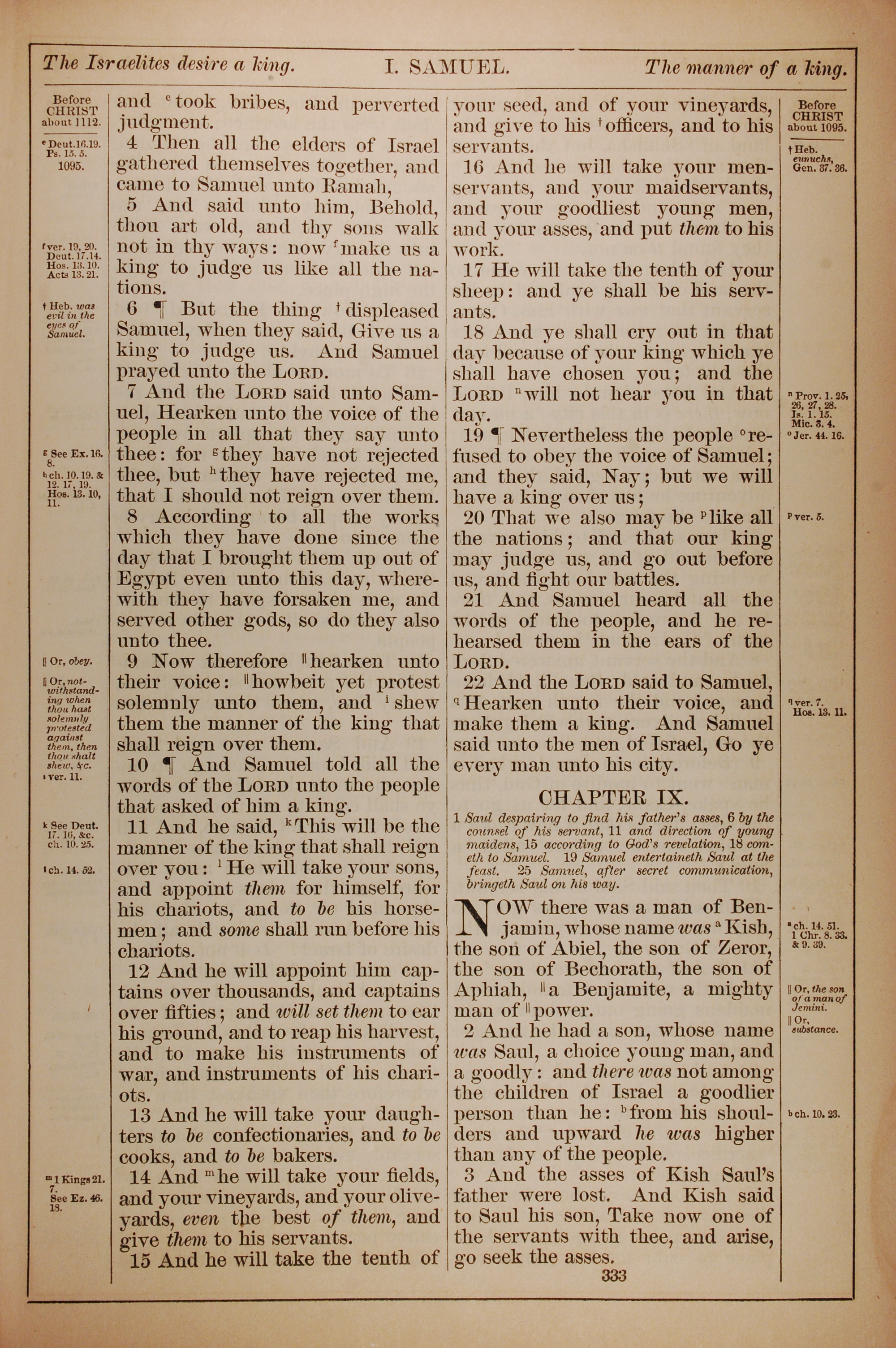 1882年Holy Bible 撒母耳记上 8 章 4 节到 9 章 3 节
