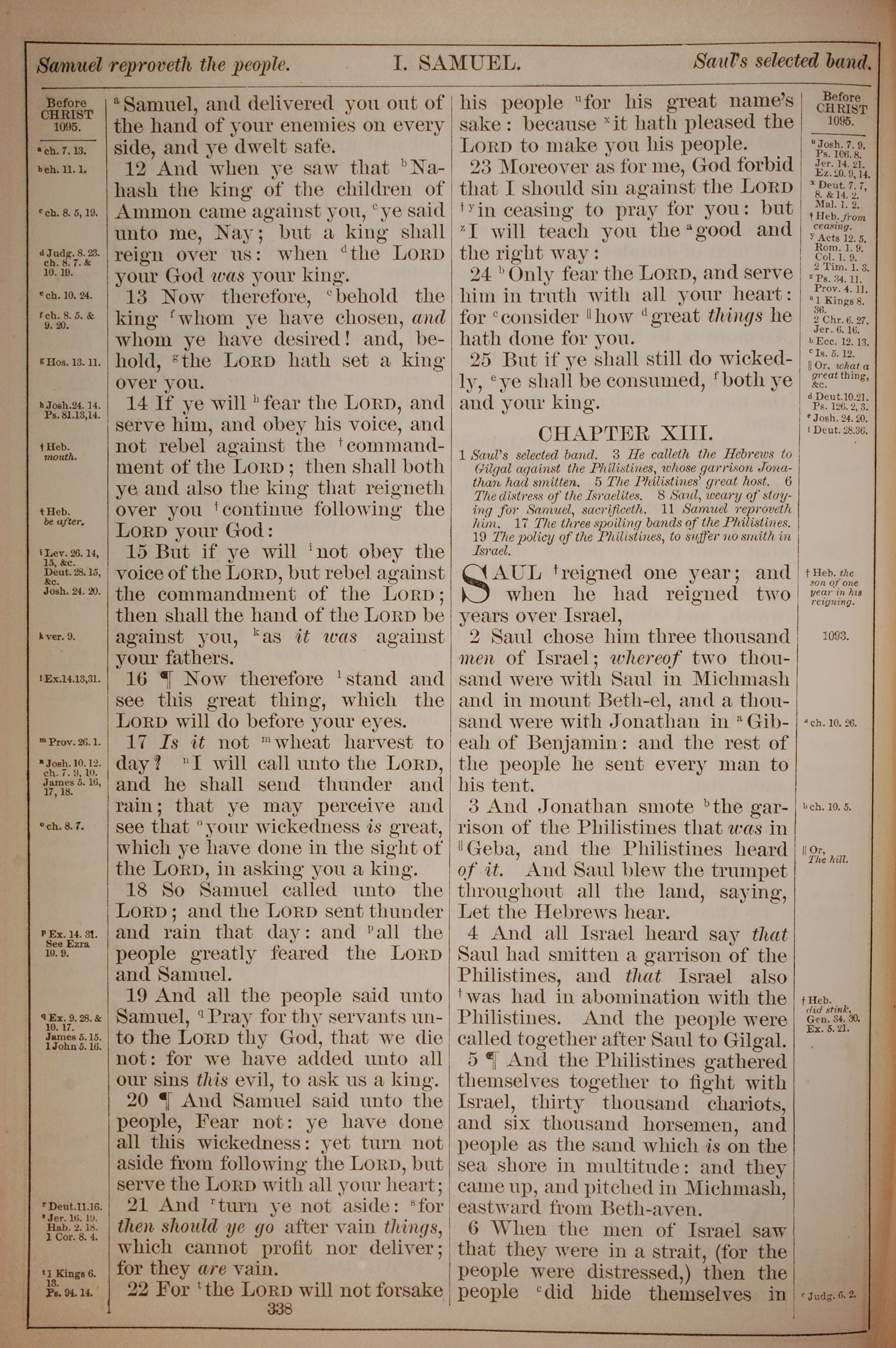 1882年Holy Bible 撒母耳记上 12 章 12 节到 13 章 6 节