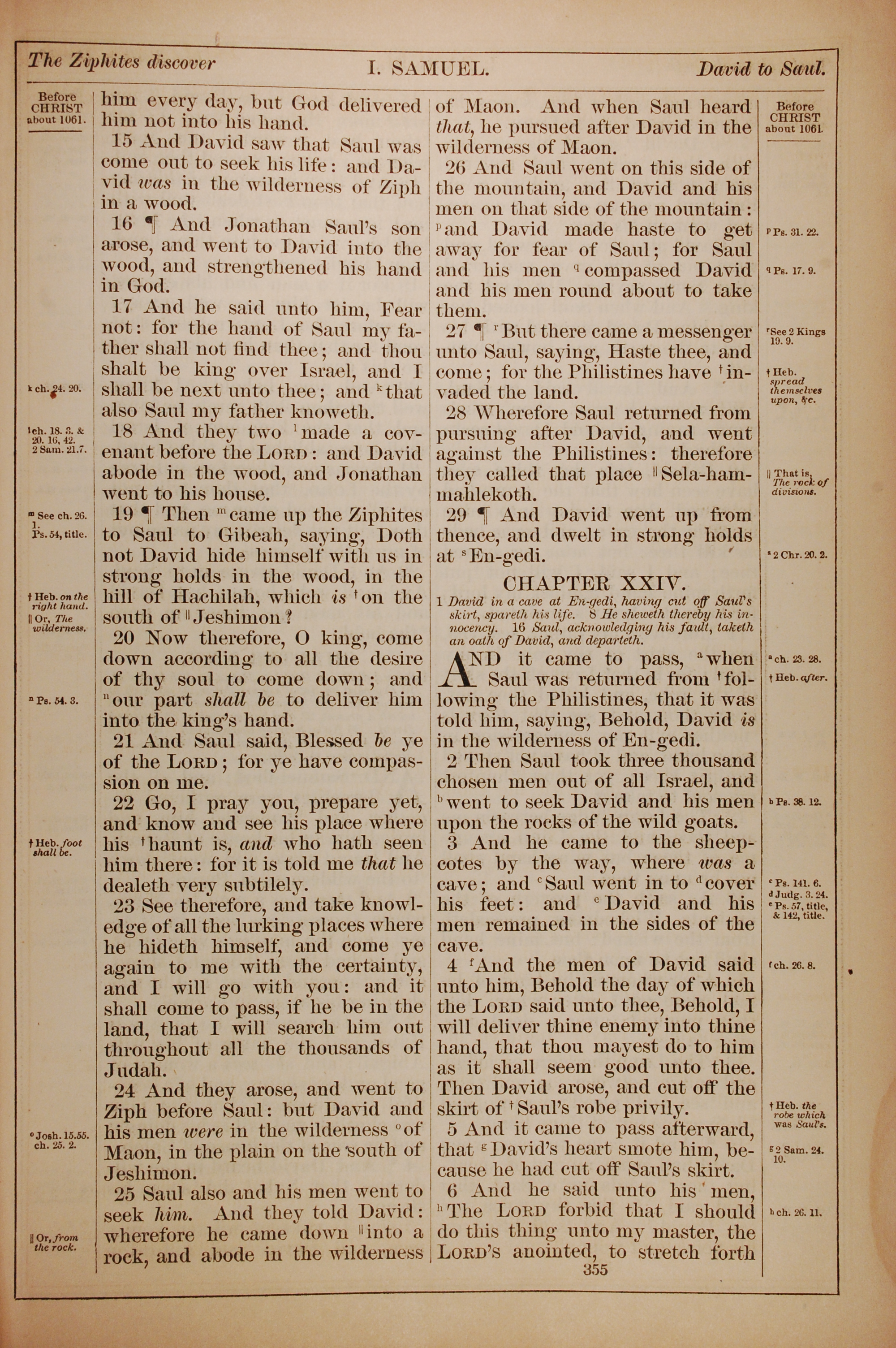 1882年Holy Bible 撒母耳记上 23 章 15 节到 24 章 6 节