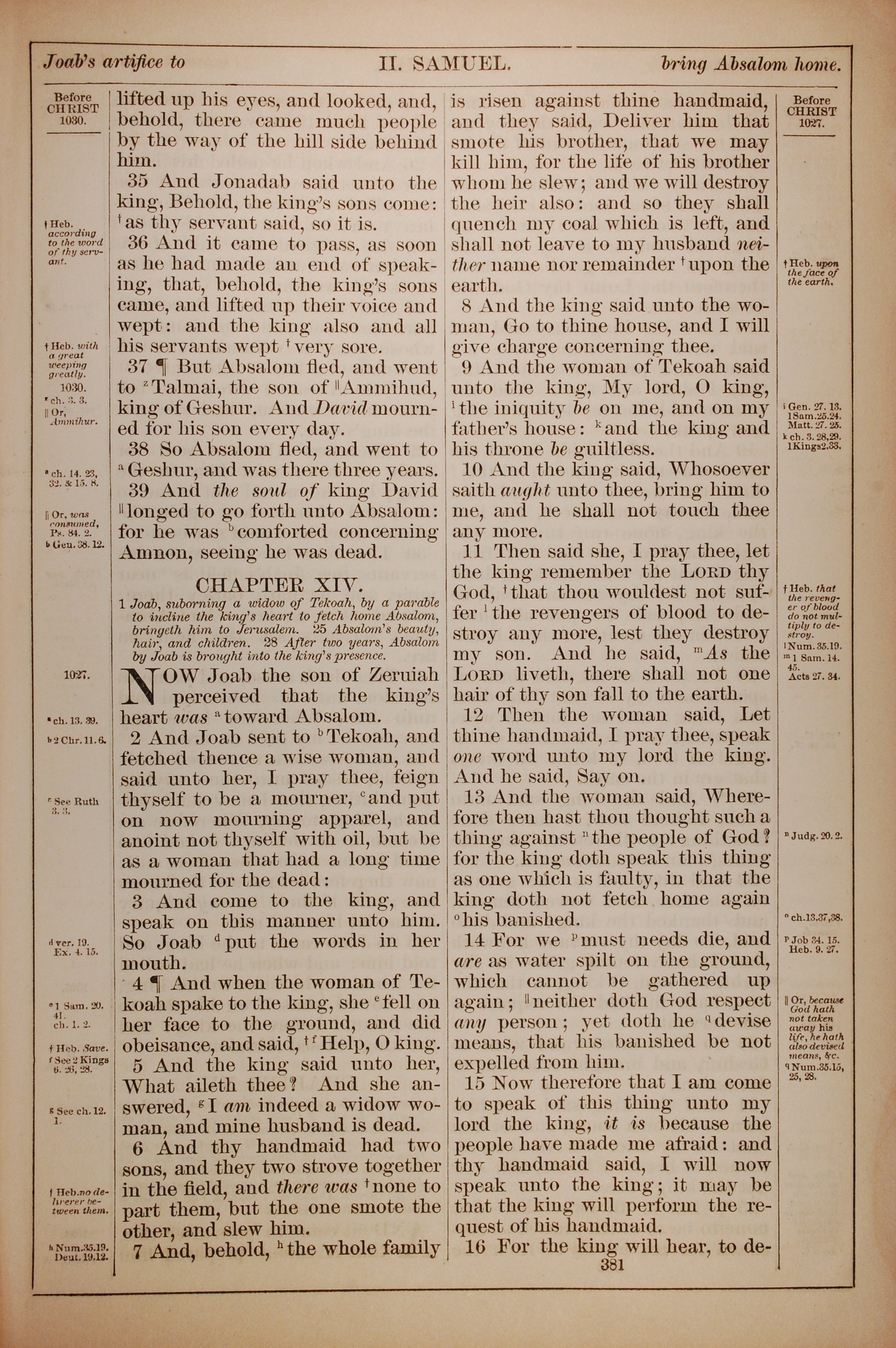 1882年Holy Bible 撒母耳记下 13 章 35 节到 14 章 16 节