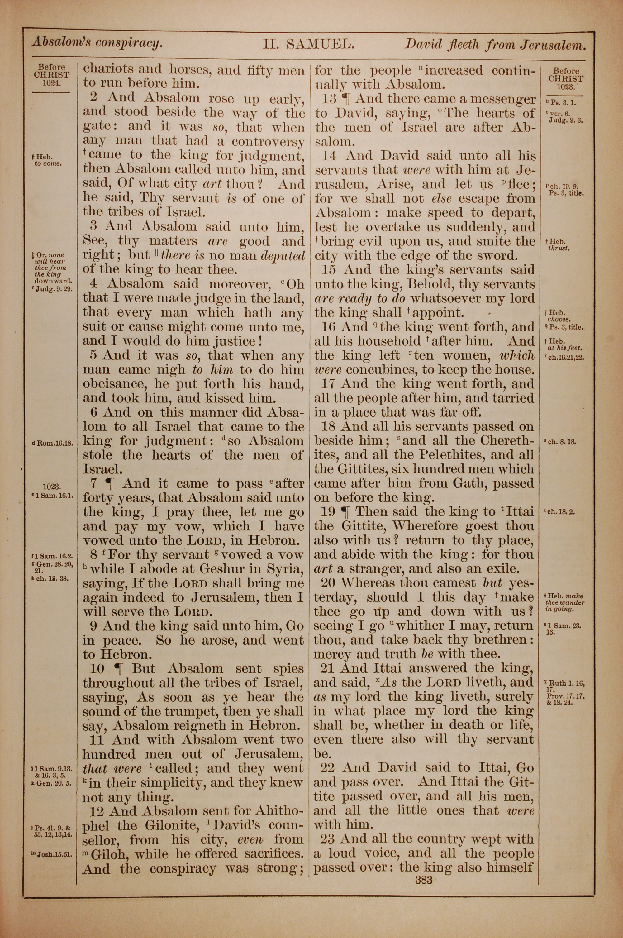 1882年Holy Bible 撒母耳记下 15 章 2 节到 15 章 23 节