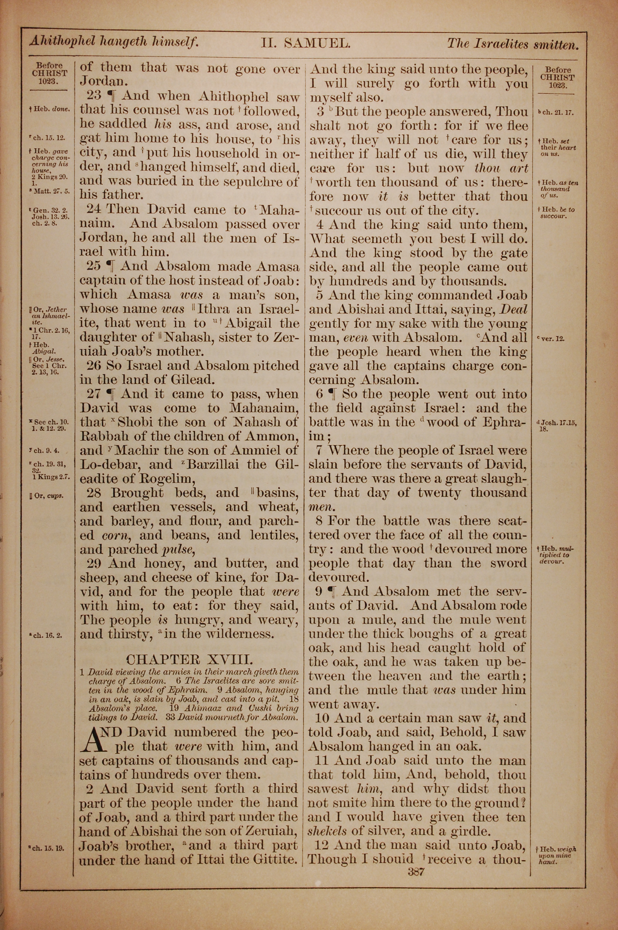 1882年Holy Bible 撒母耳记下 17 章 23 节到 18 章 12 节