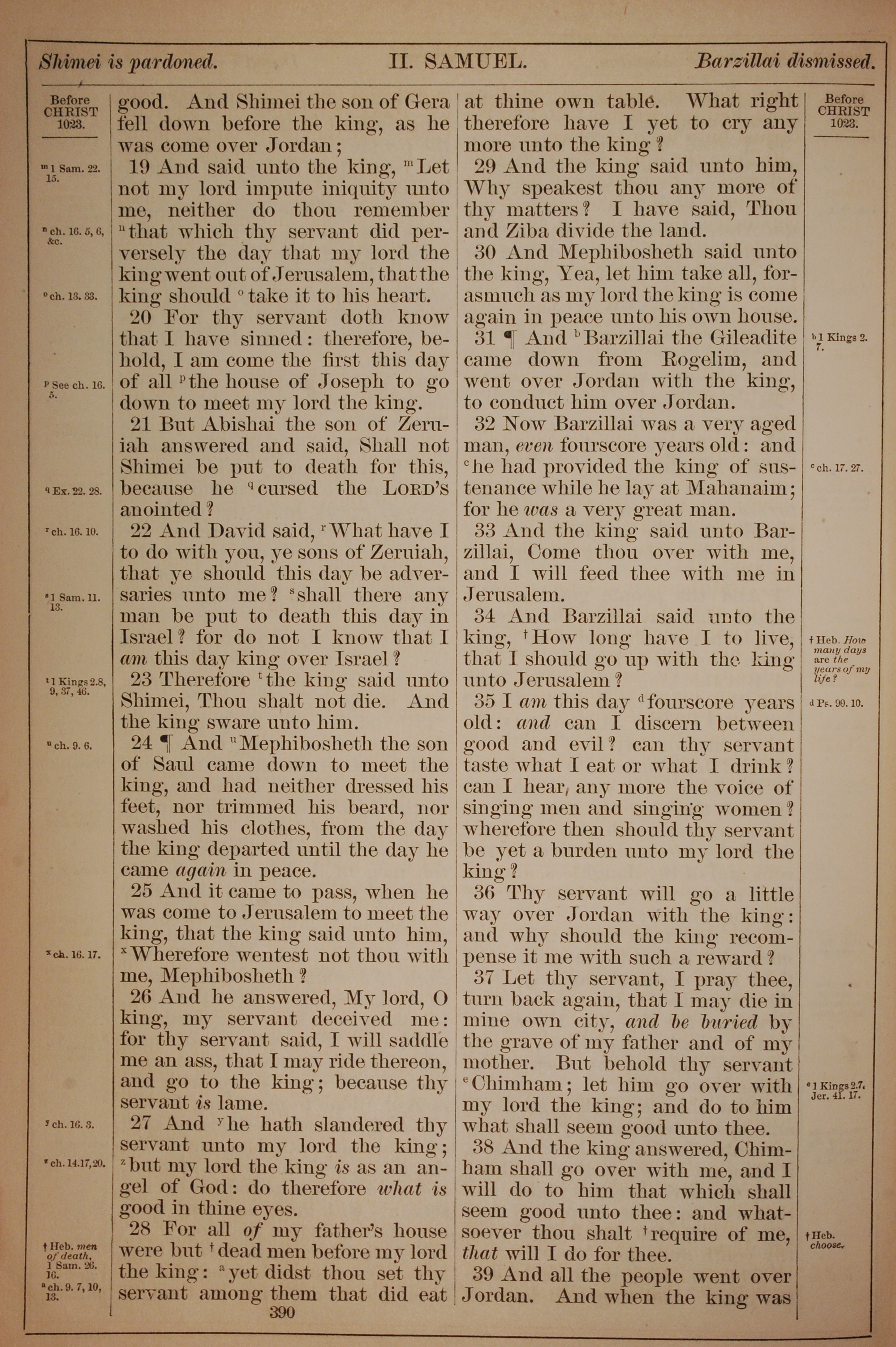 1882年Holy Bible 撒母耳记下 19 章 19 节到 19 章 39 节