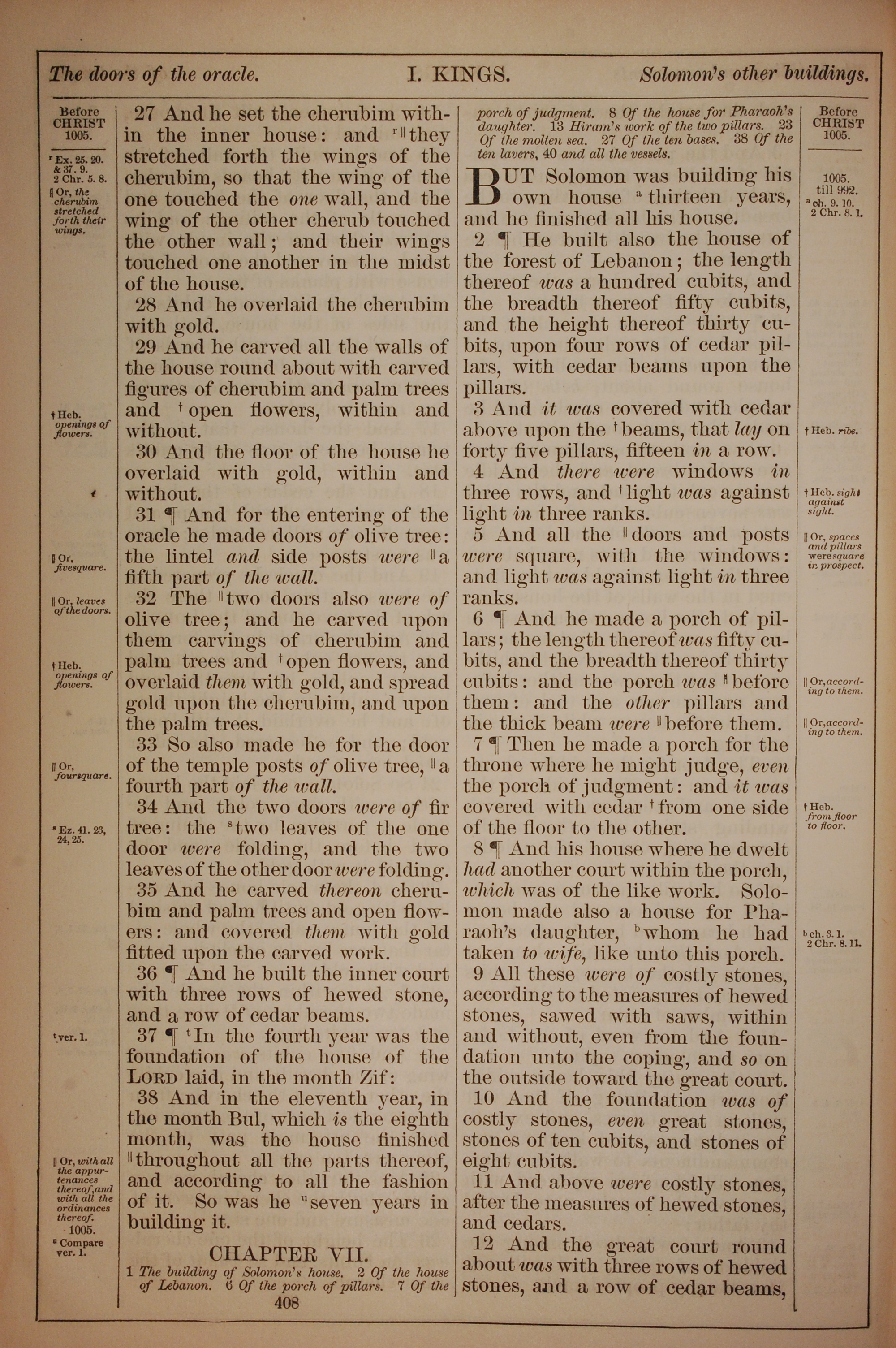1882年Holy Bible 列王纪上 6 章 27 节到 7 章 12 节