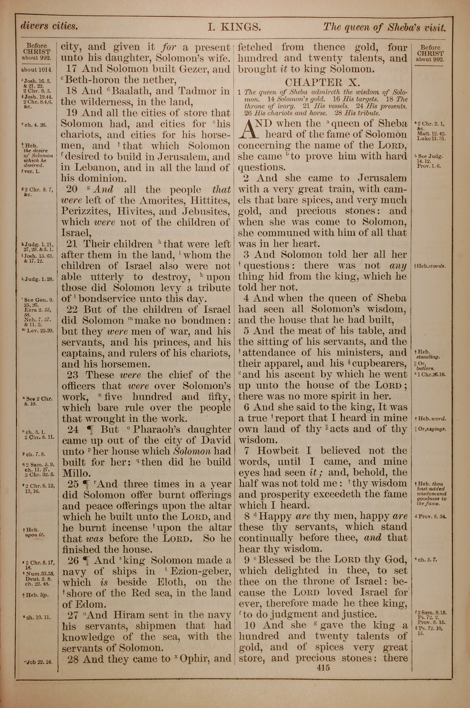 1882年Holy Bible 列王纪上 9 章 17 节到 10 章 10 节