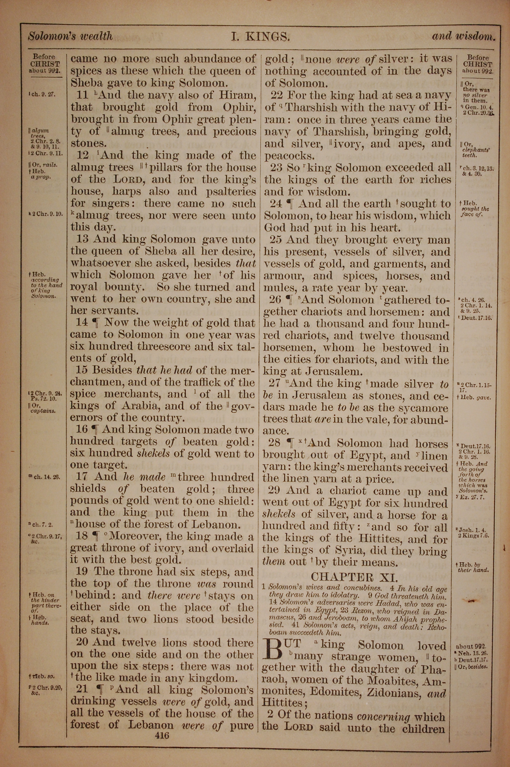 1882年Holy Bible 列王纪上 10 章 11 节到 11 章 2 节