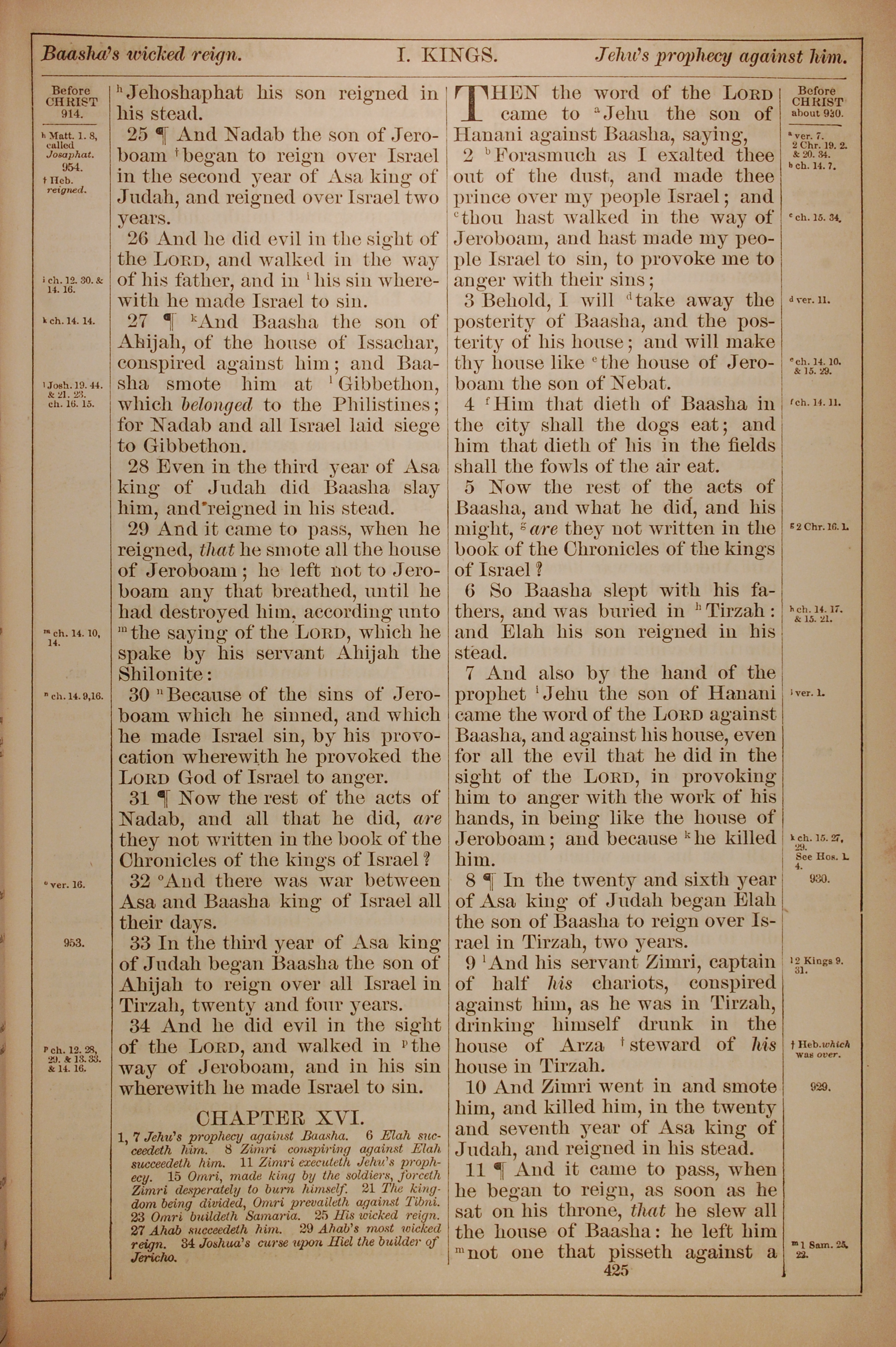 1882年Holy Bible 列王纪上 15 章 25 节到 16 章 11 节