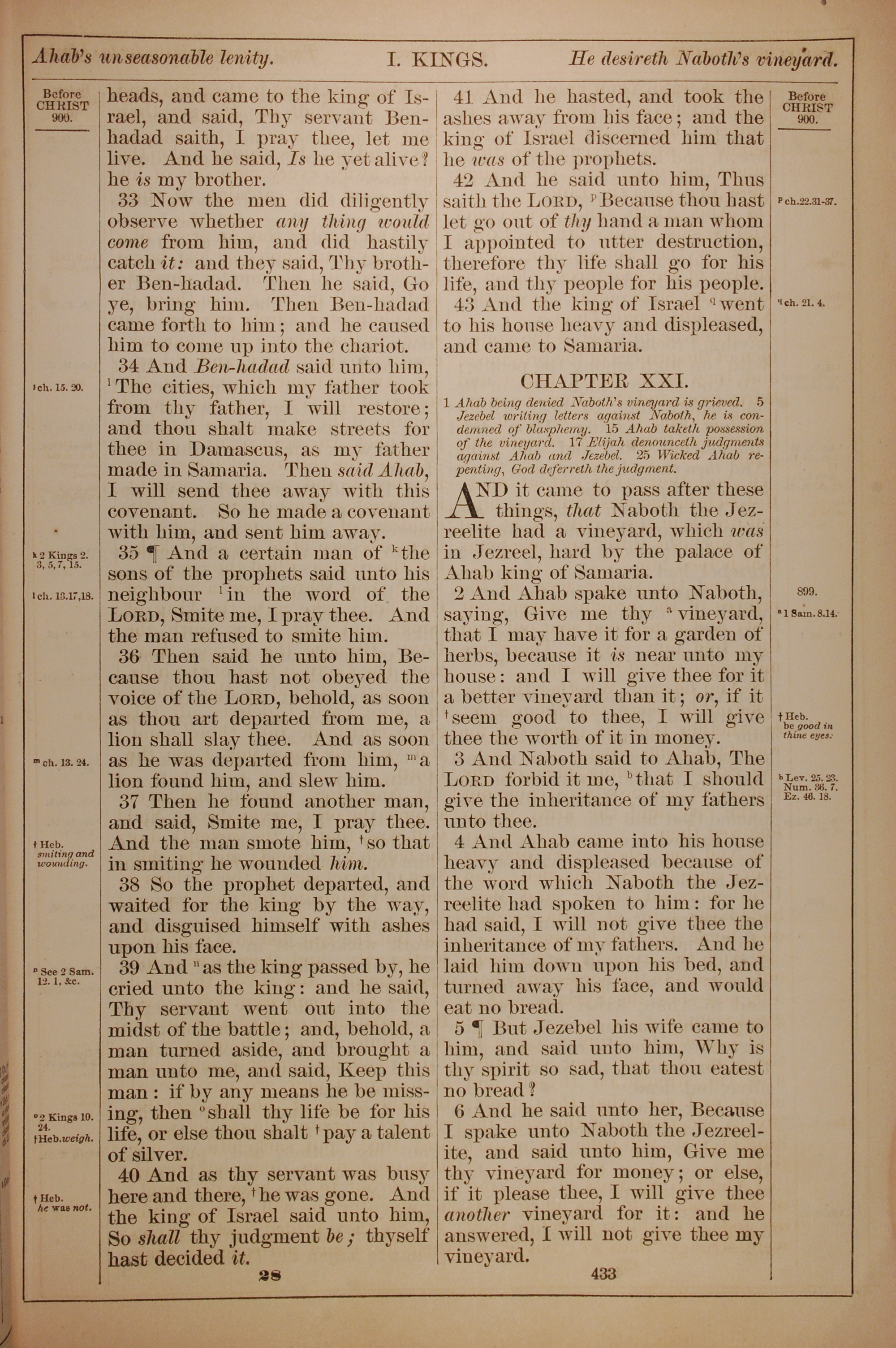 1882年Holy Bible 列王纪上 20 章 33 节到 21 章 6 节