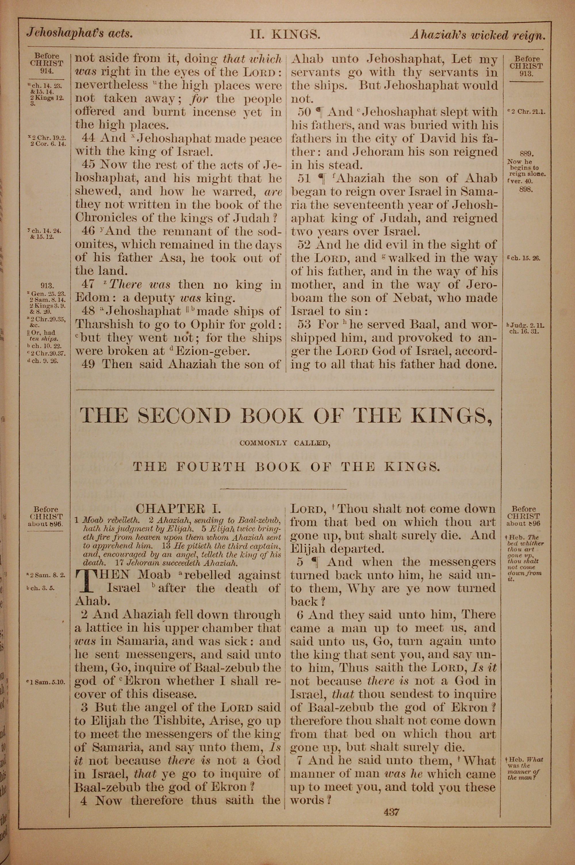 1882年Holy Bible 列王纪下 1 章 1 节到 1 章 7 节