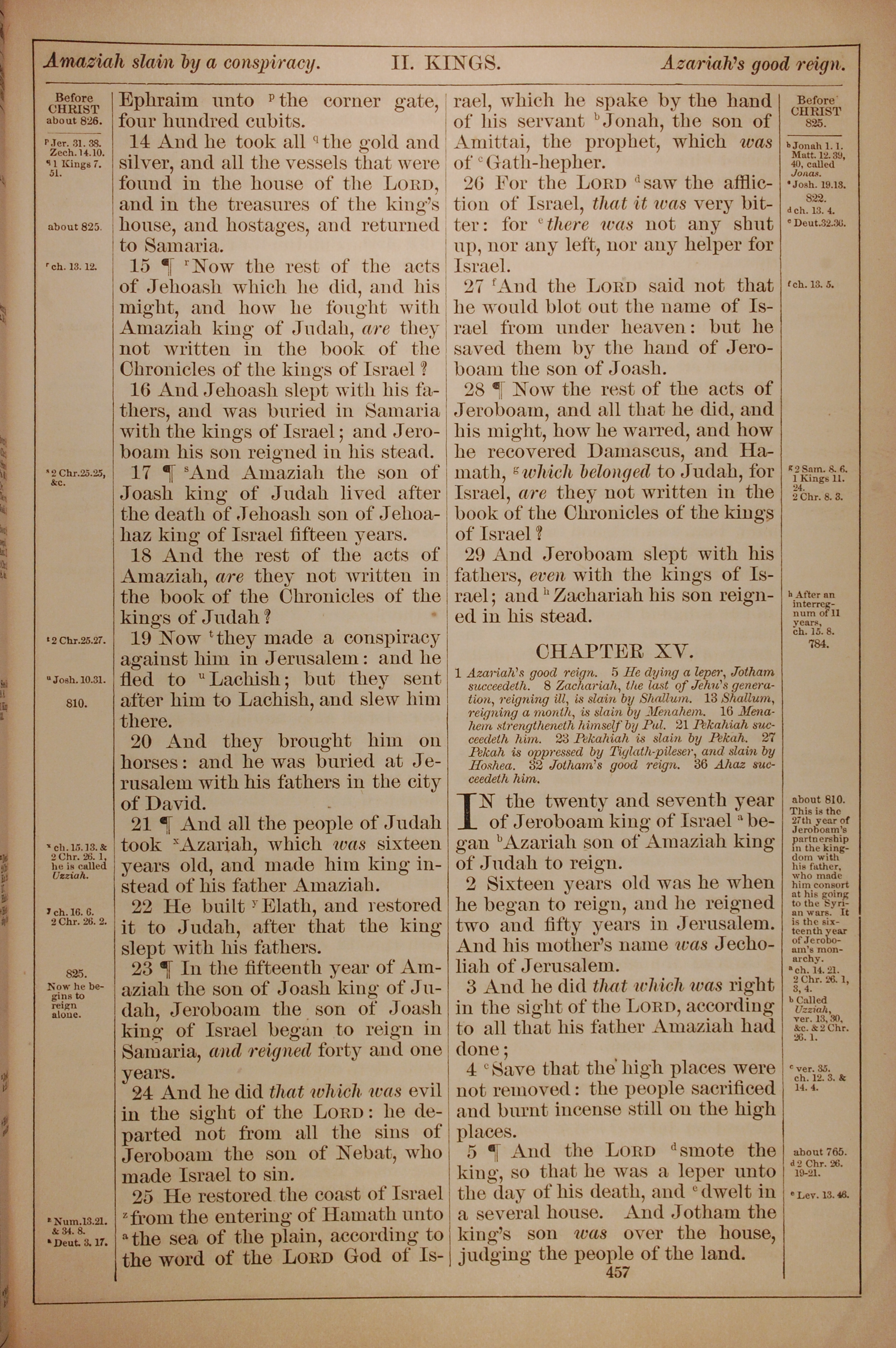1882年Holy Bible 列王纪下 14 章 14 节到 15 章 5 节