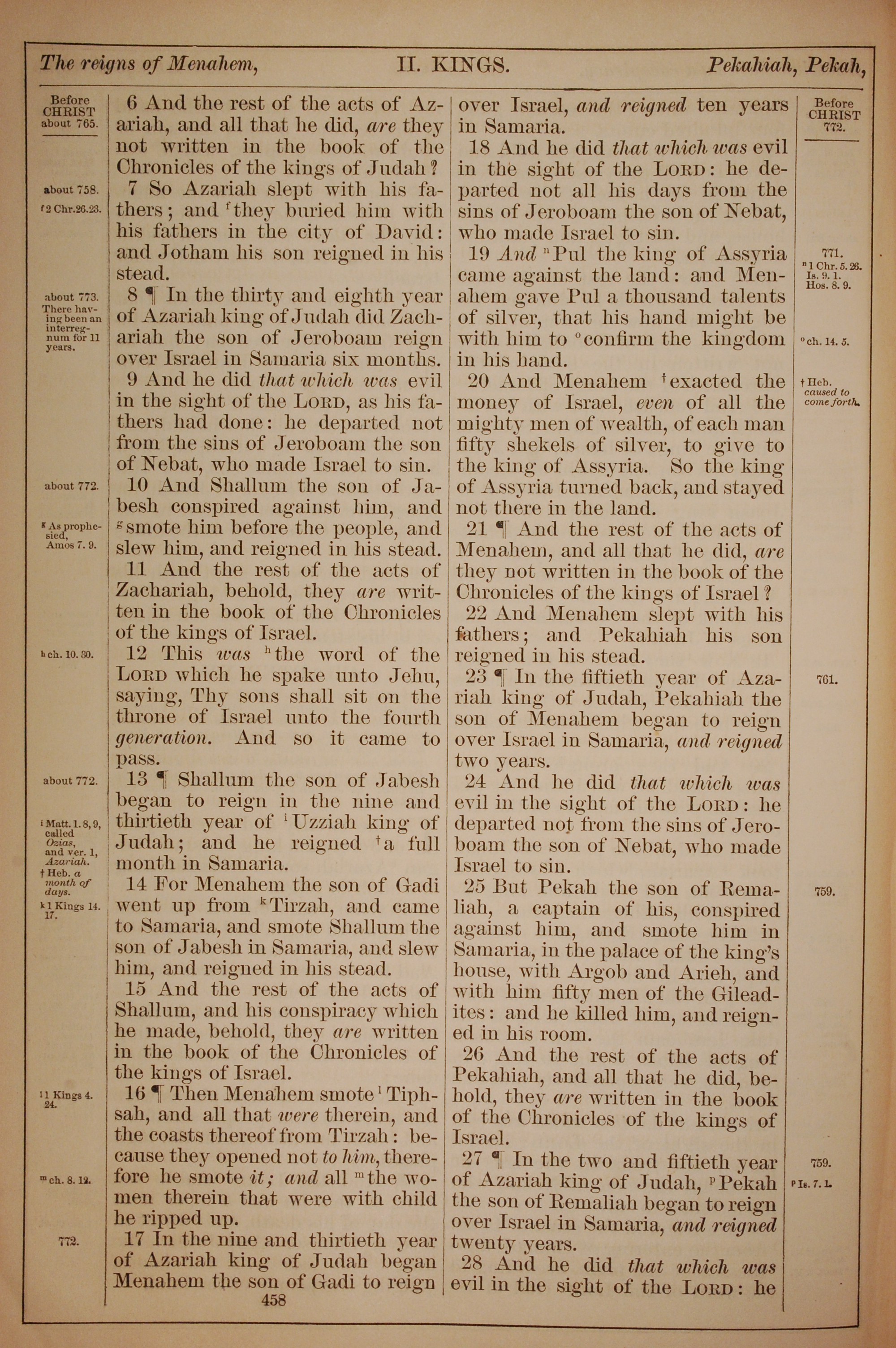 1882年Holy Bible 列王纪下 15 章 6 节到 15 章 28 节