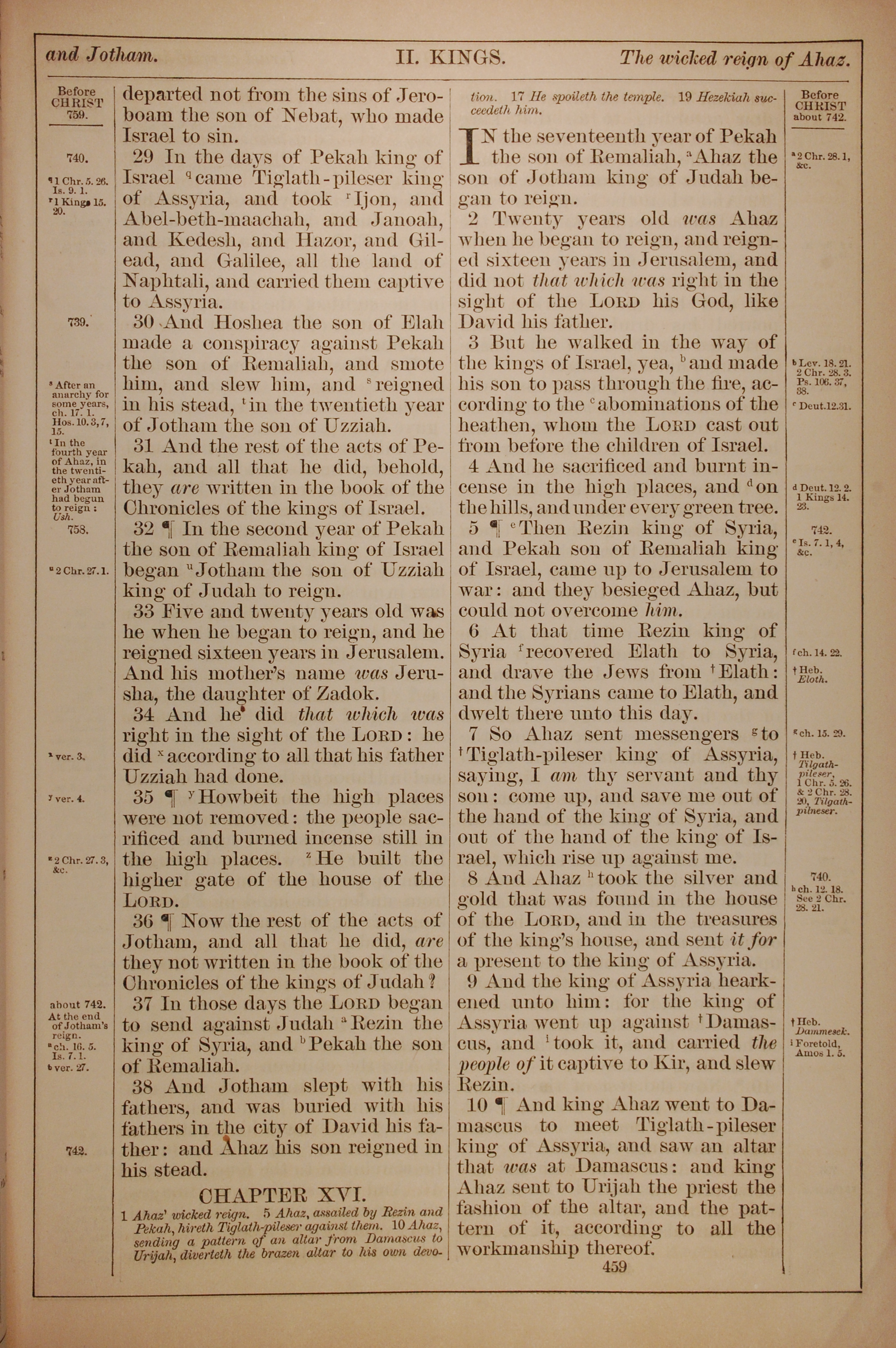 1882年Holy Bible 列王纪下 15 章 29 节到 16 章 10 节