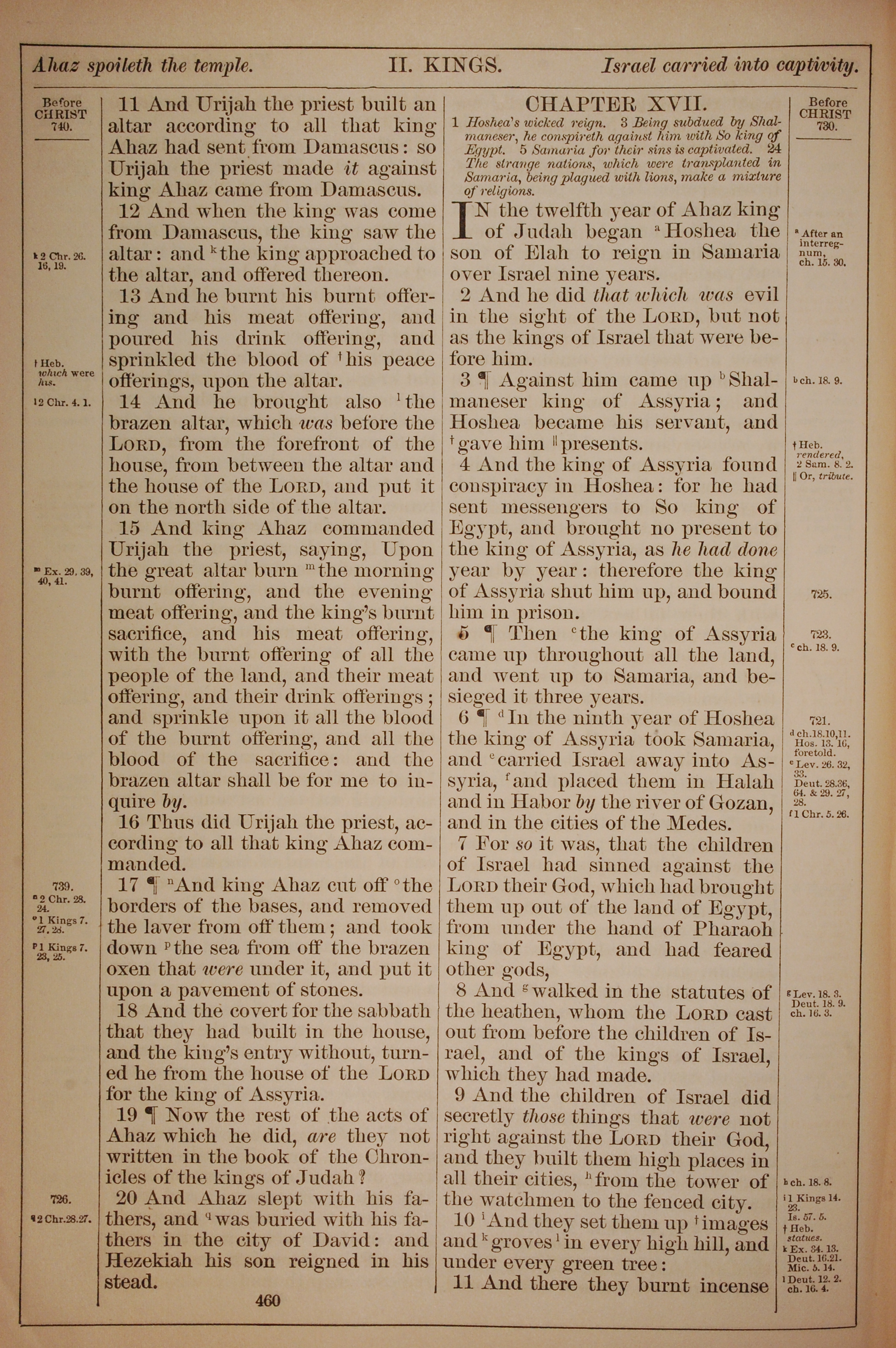 1882年Holy Bible 列王纪下 16 章 11 节到 17 章 11 节