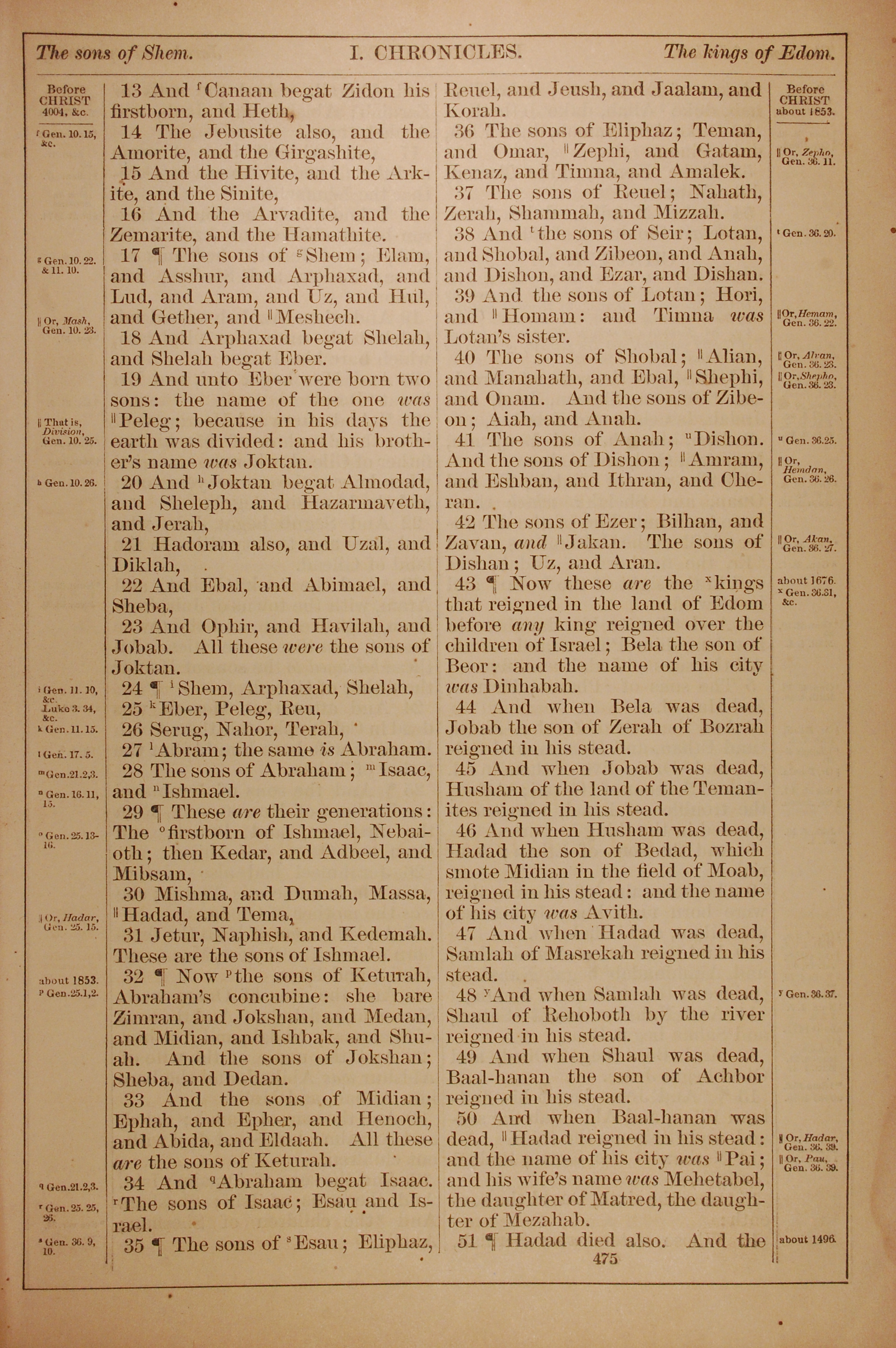 1882年Holy Bible 历代志上 1 章 13 节到 1 章 51 节