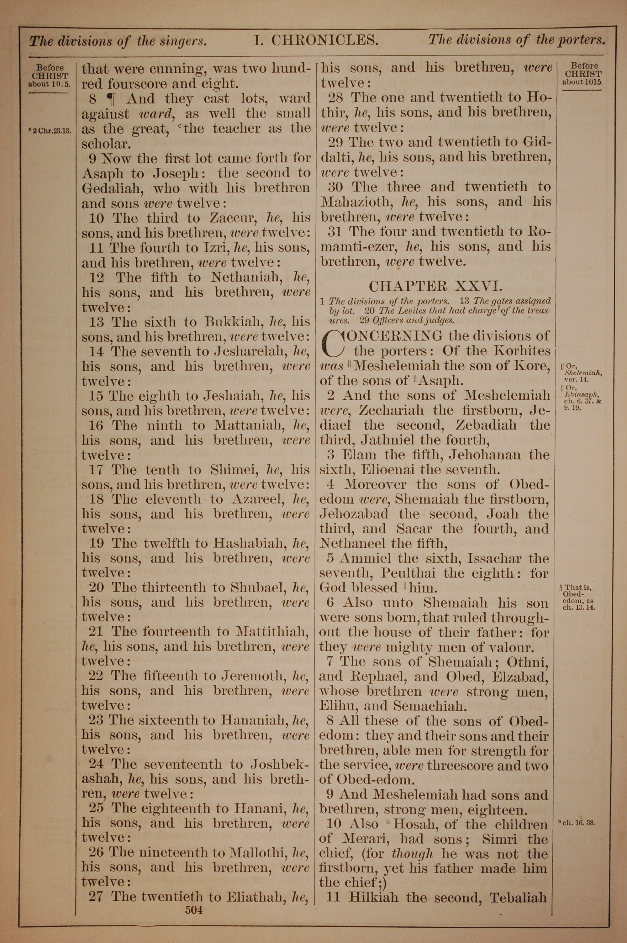 1882年Holy Bible 历代志上 25 章 8 节到 26 章 11 节