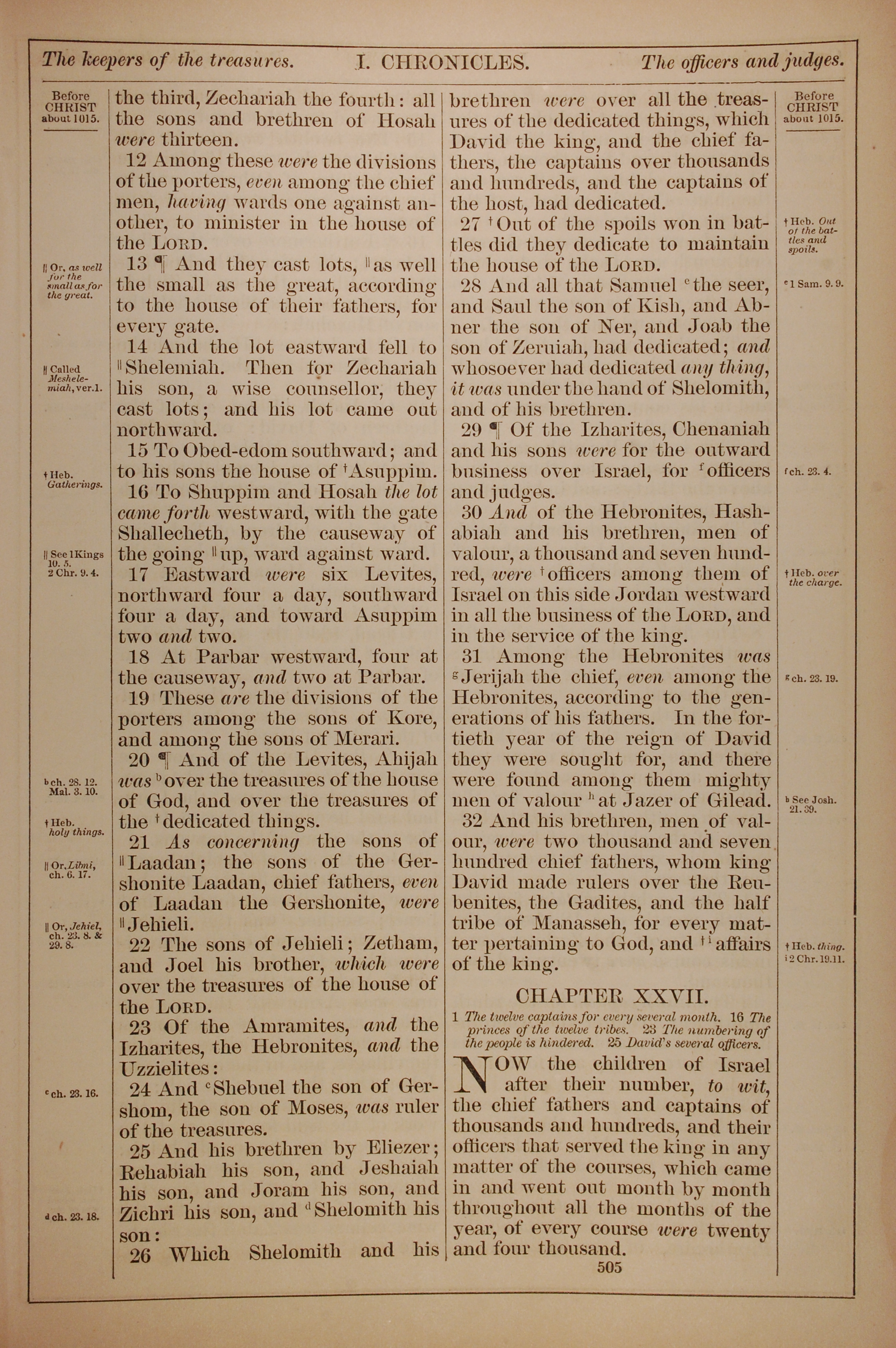 1882年Holy Bible 历代志上 26 章 12 节到 27 章 1 节