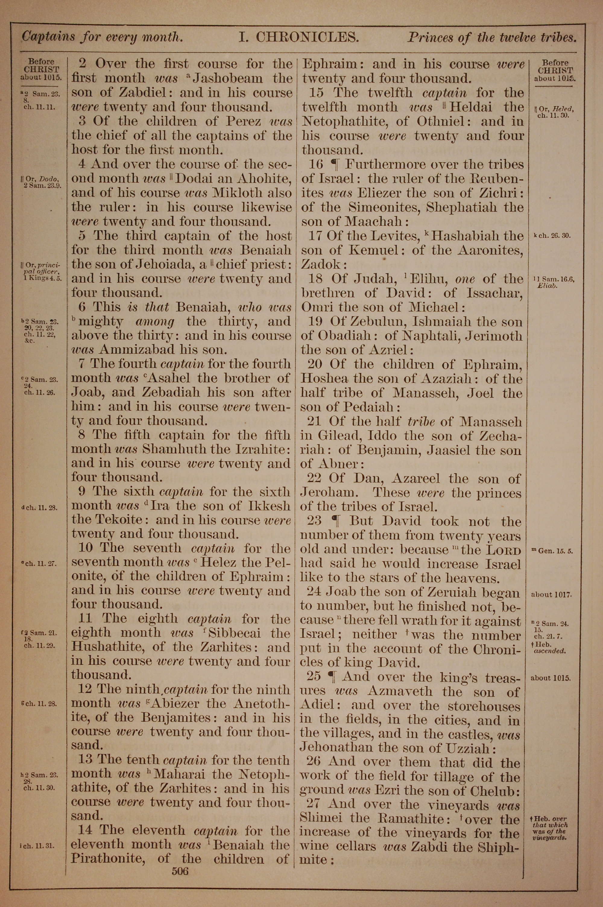 1882年Holy Bible 历代志上 27 章 2 节到 27 章 27 节