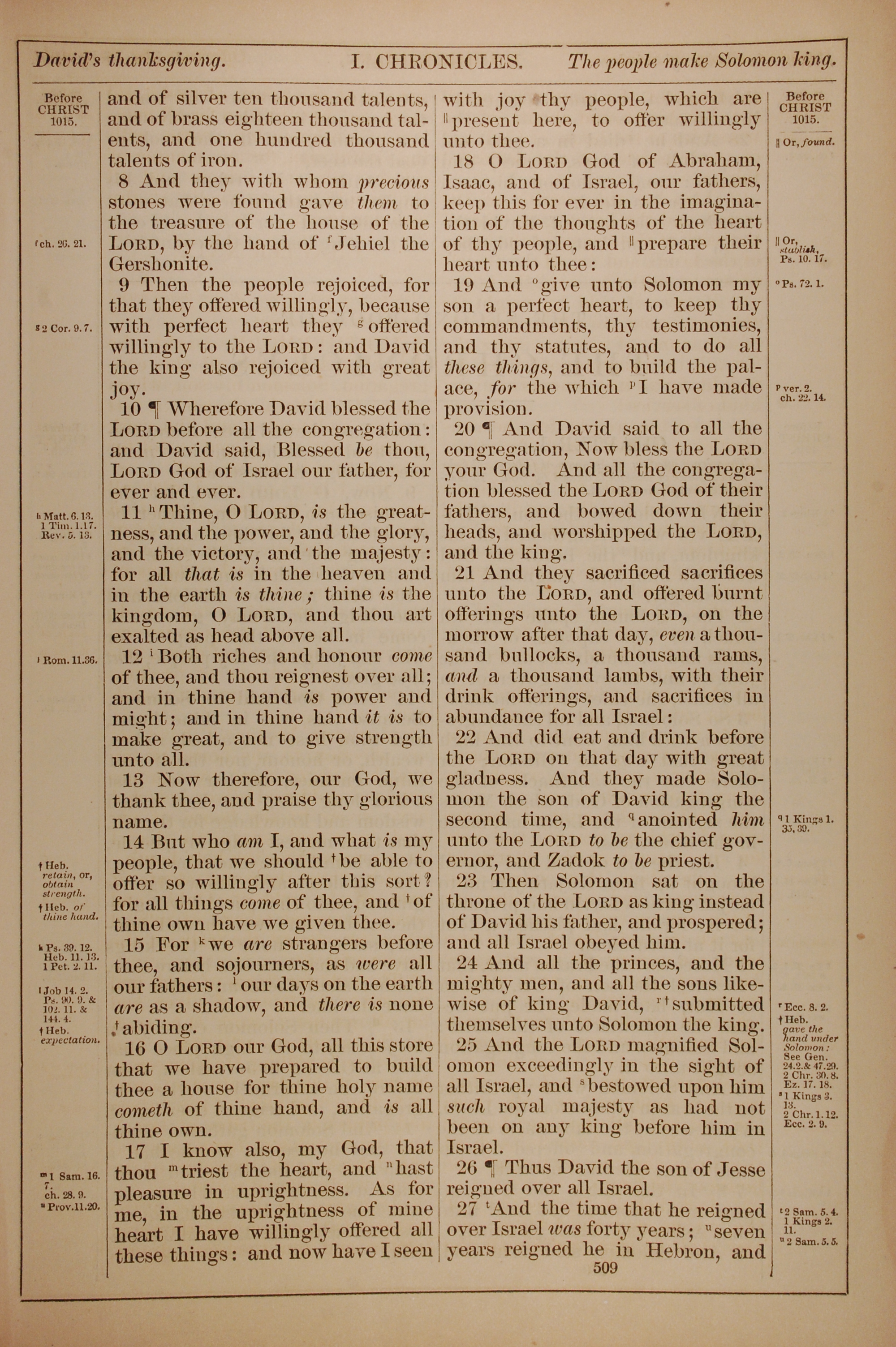 1882年Holy Bible 历代志上 29 章 8 节到 29 章 27 节