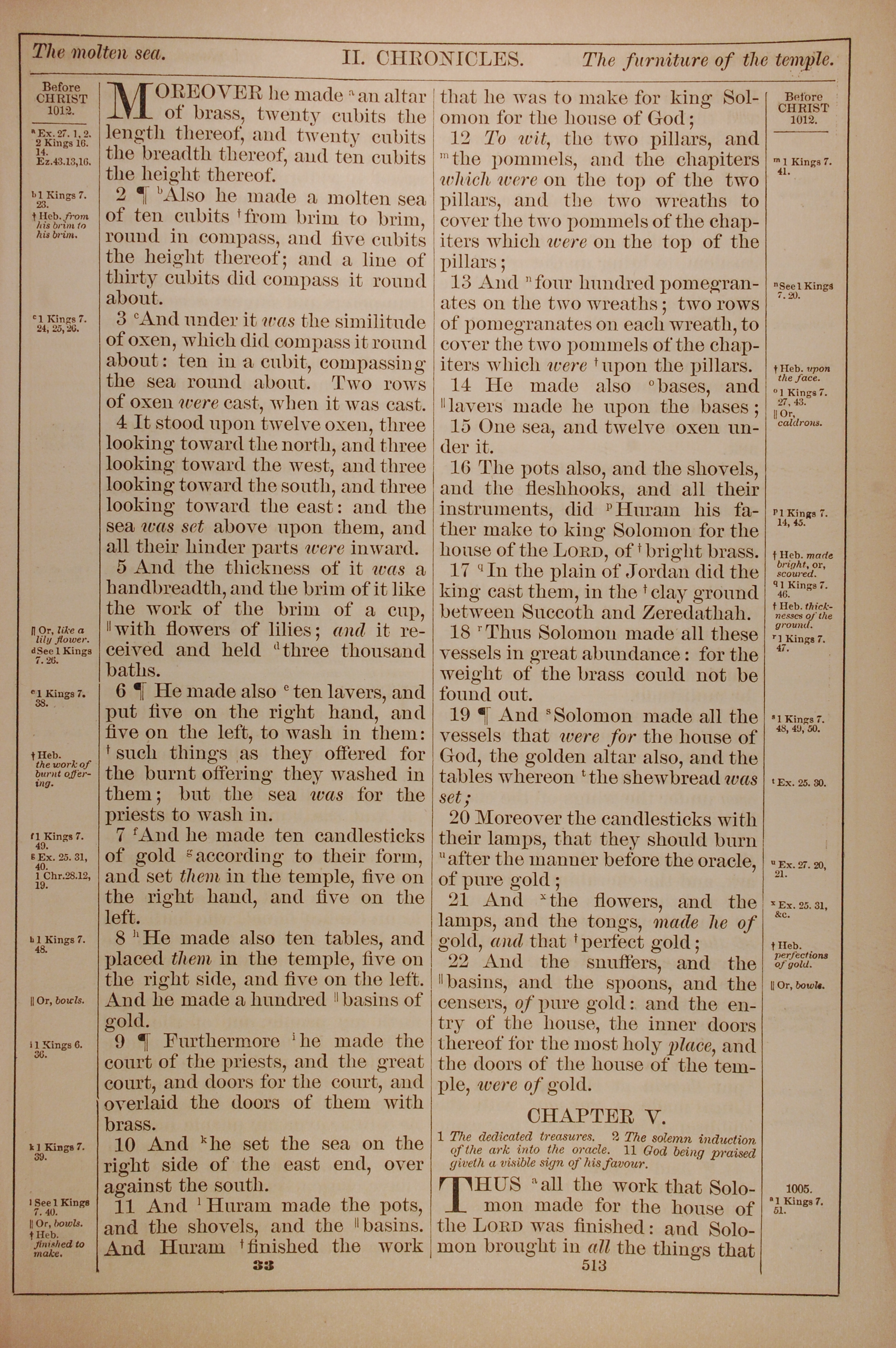 1882年Holy Bible 历代志下 4 章 1 节到 5 章 1 节