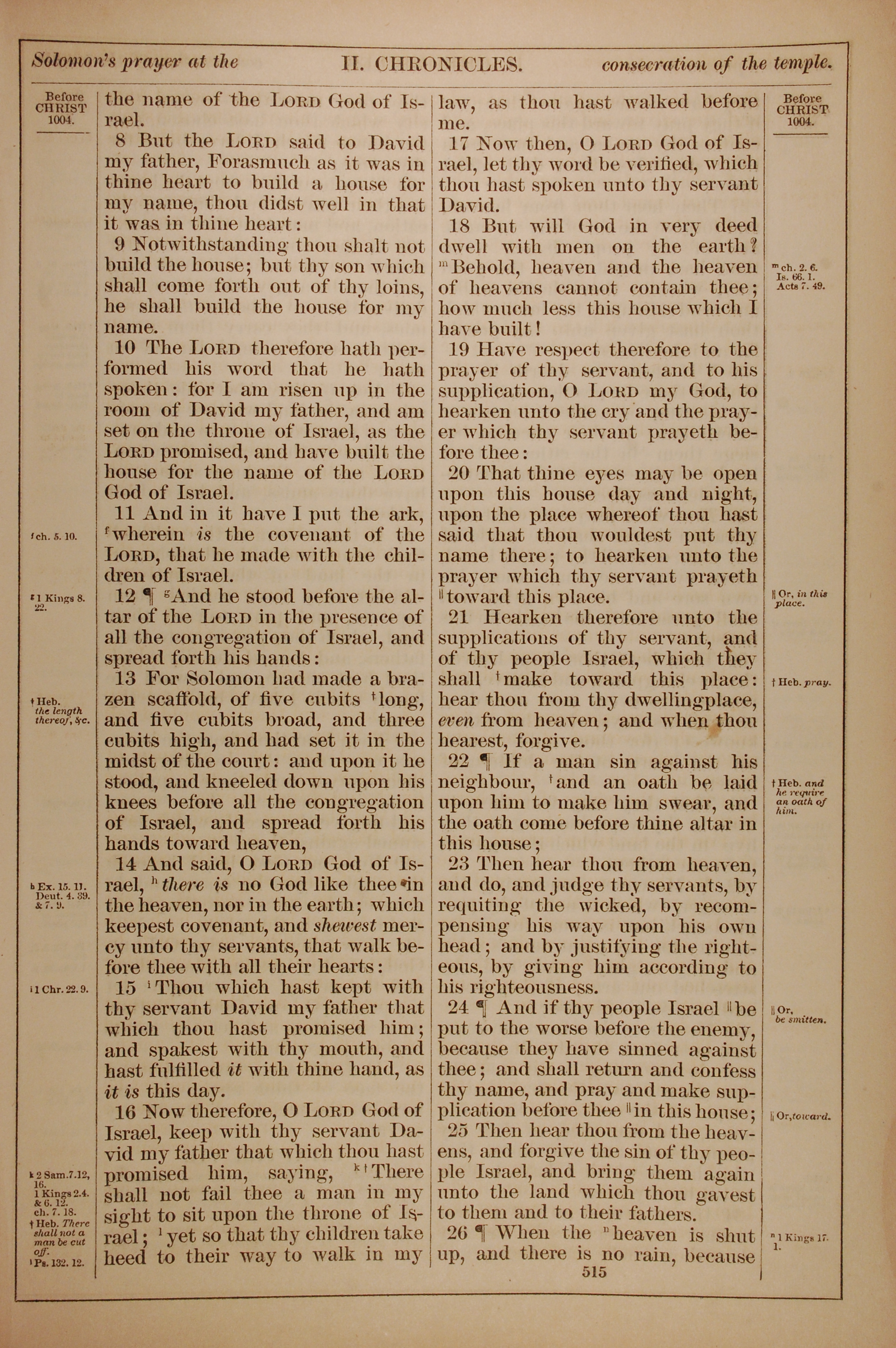 1882年Holy Bible 历代志下 6 章 8 节到 6 章 26 节