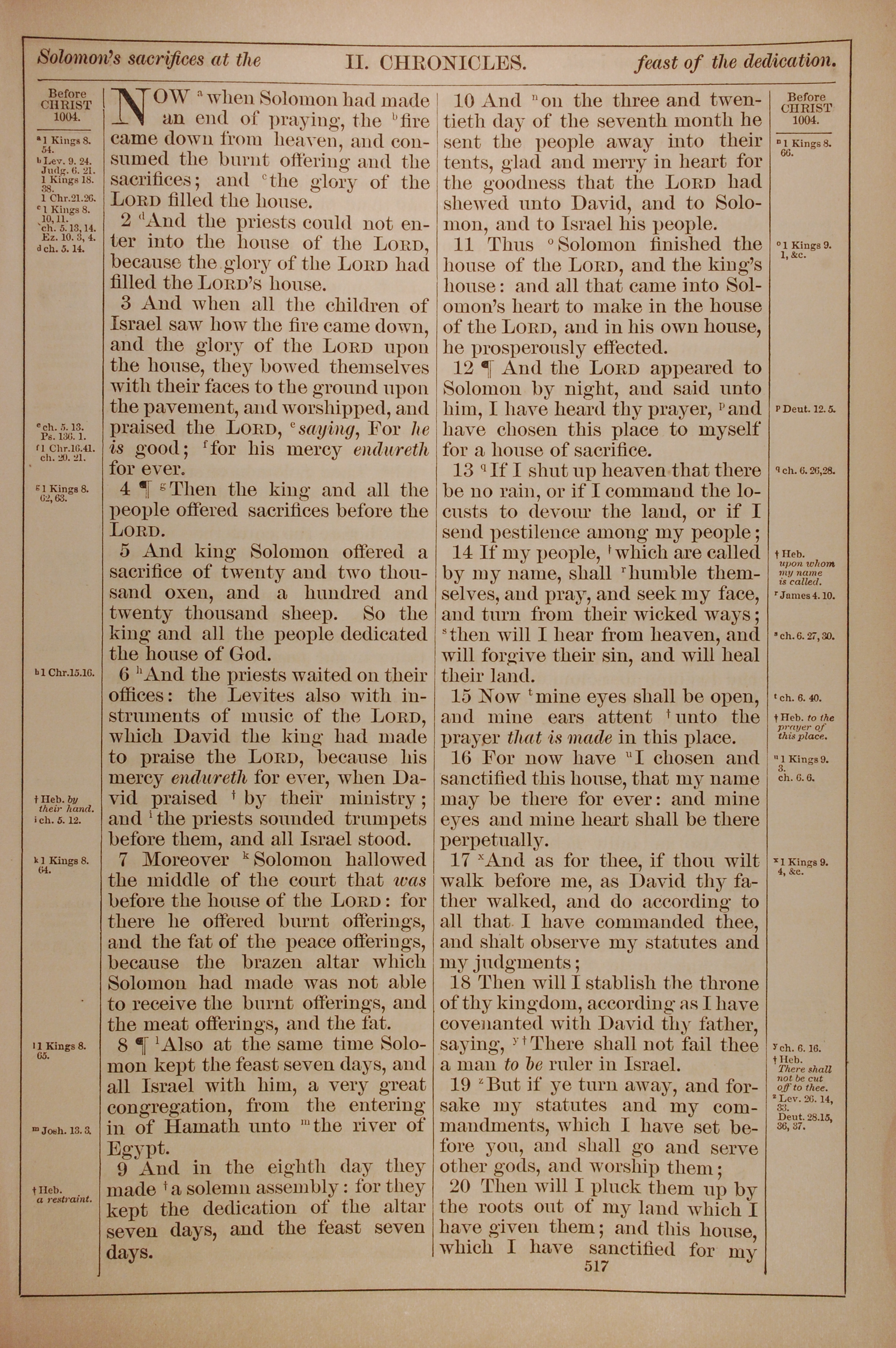 1882年Holy Bible 历代志下 7 章 1 节到 7 章 20 节