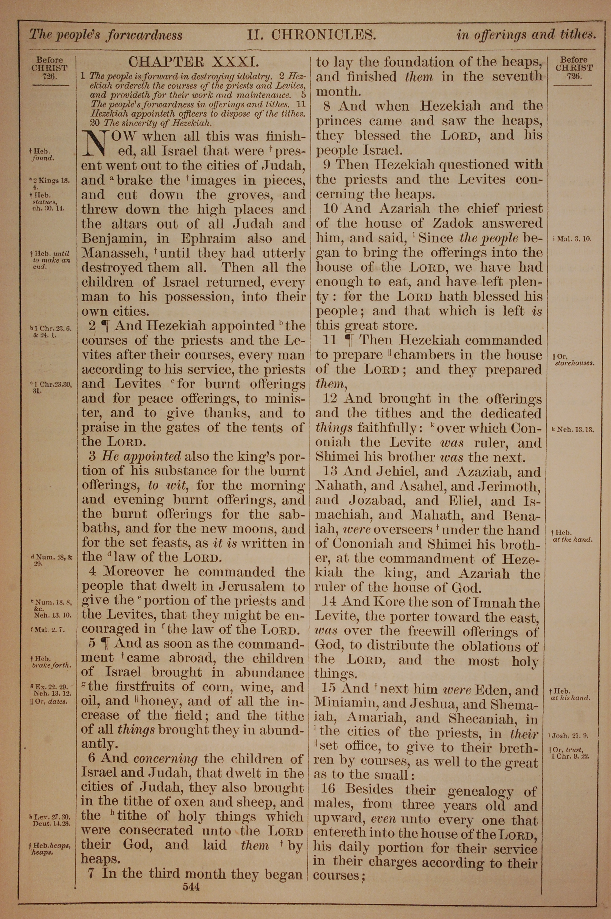 1882年Holy Bible 历代志下 31 章 1 节到 31 章 16 节