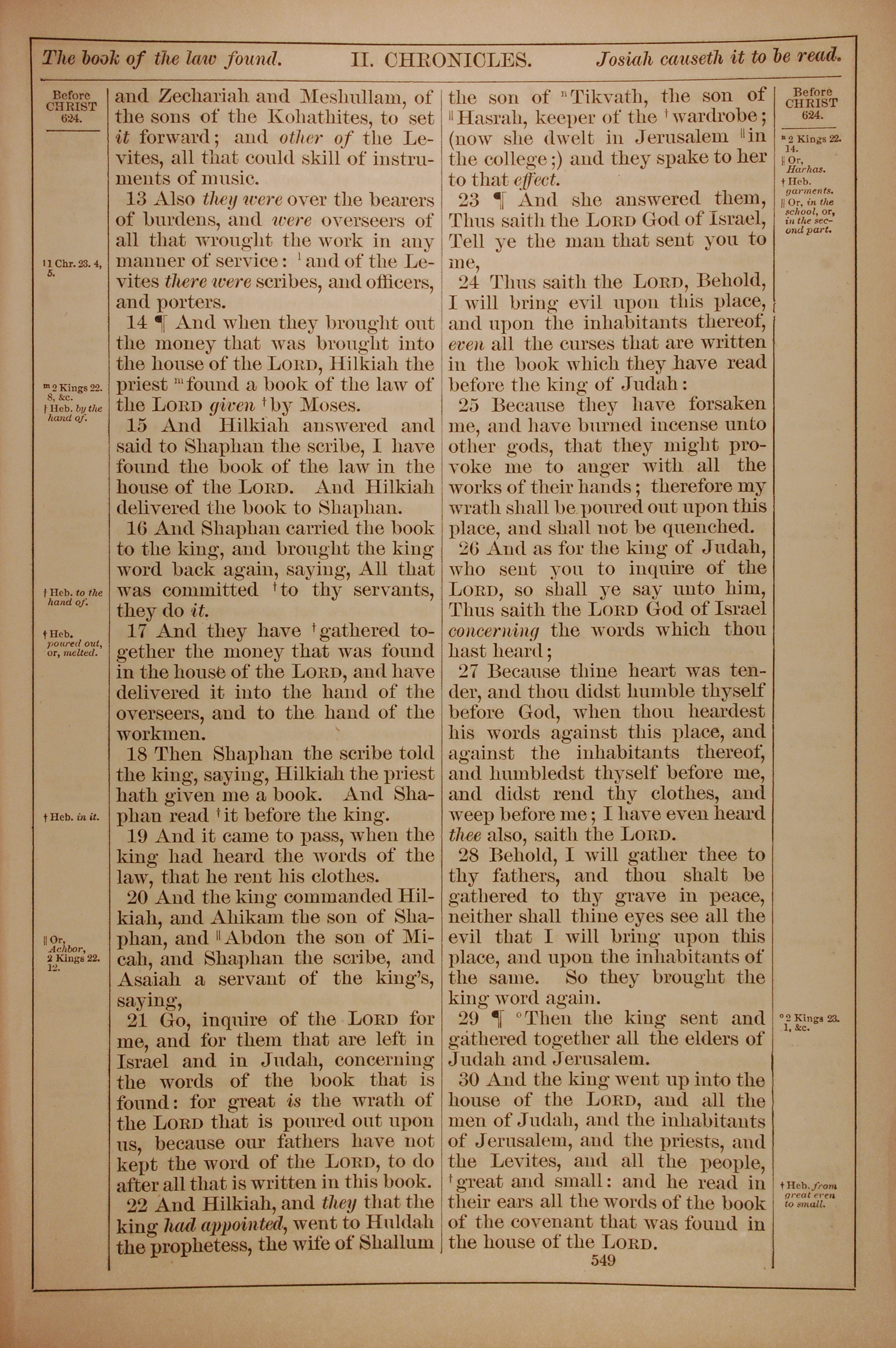1882年Holy Bible 历代志下 34 章 13 节到 34 章 30 节