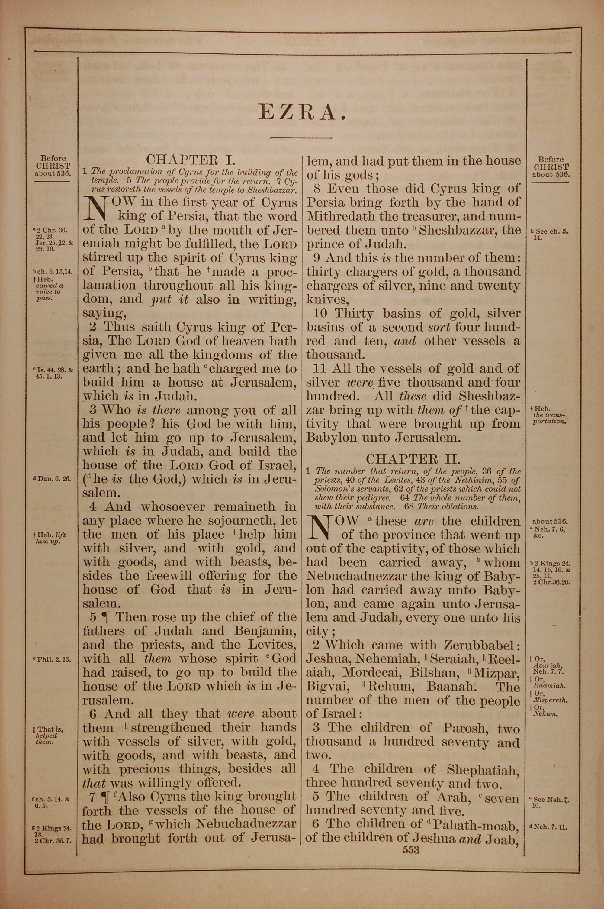 1882年Holy Bible 以斯拉记 1 章 1 节到 2 章 6 节