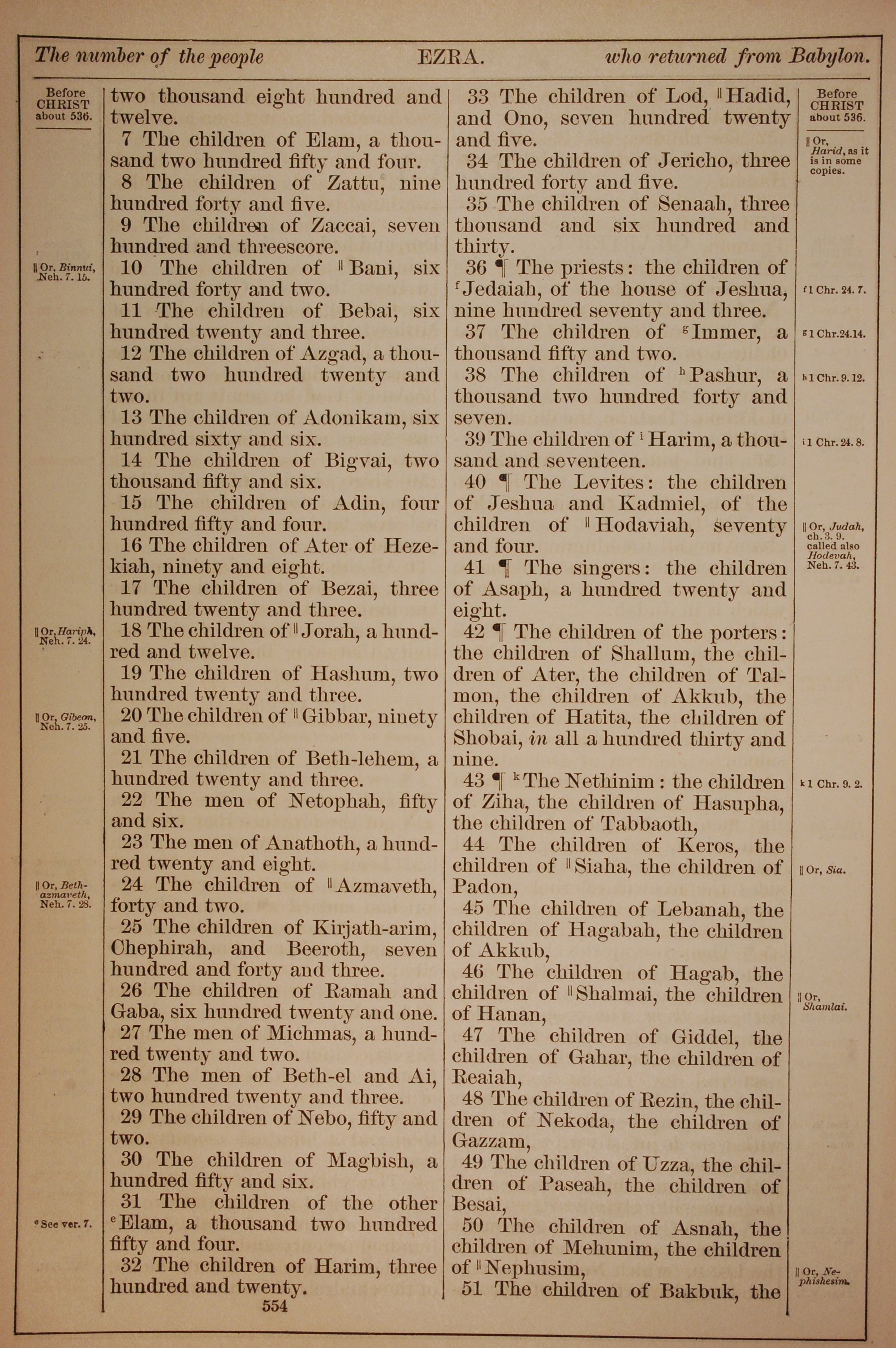 1882年Holy Bible 以斯拉记 2 章 7 节到 2 章 51 节
