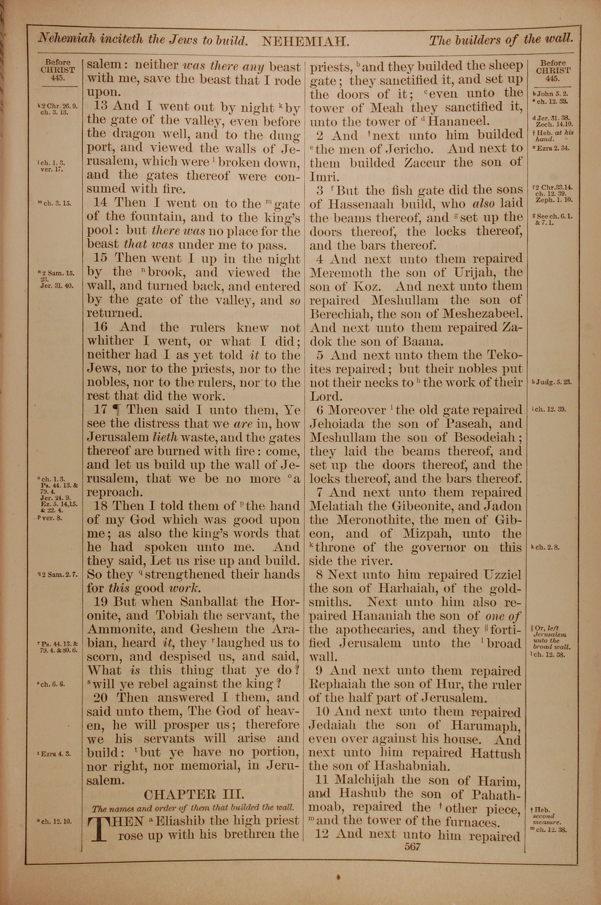 1882年Holy Bible 尼希米记 2 章 13 节到 3 章 12 节