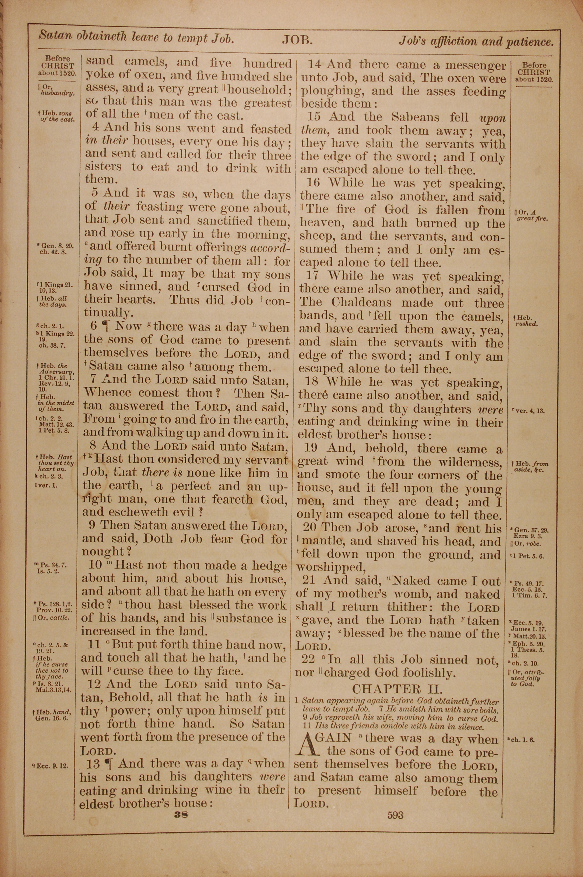 1882年Holy Bible 约伯记 1 章 4 节到 2 章 1 节