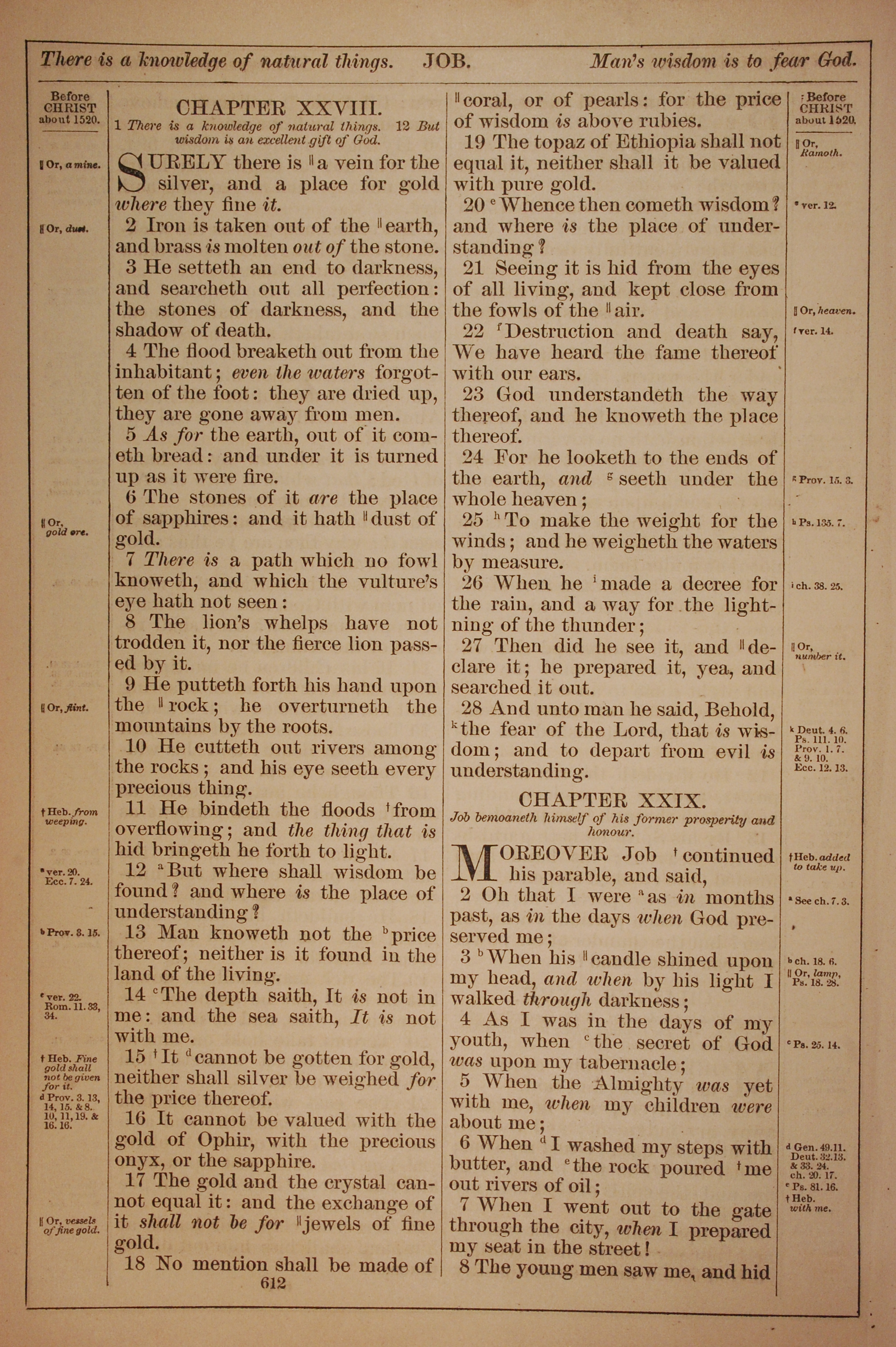 1882年Holy Bible 约伯记 28 章 1 节到 29 章 8 节