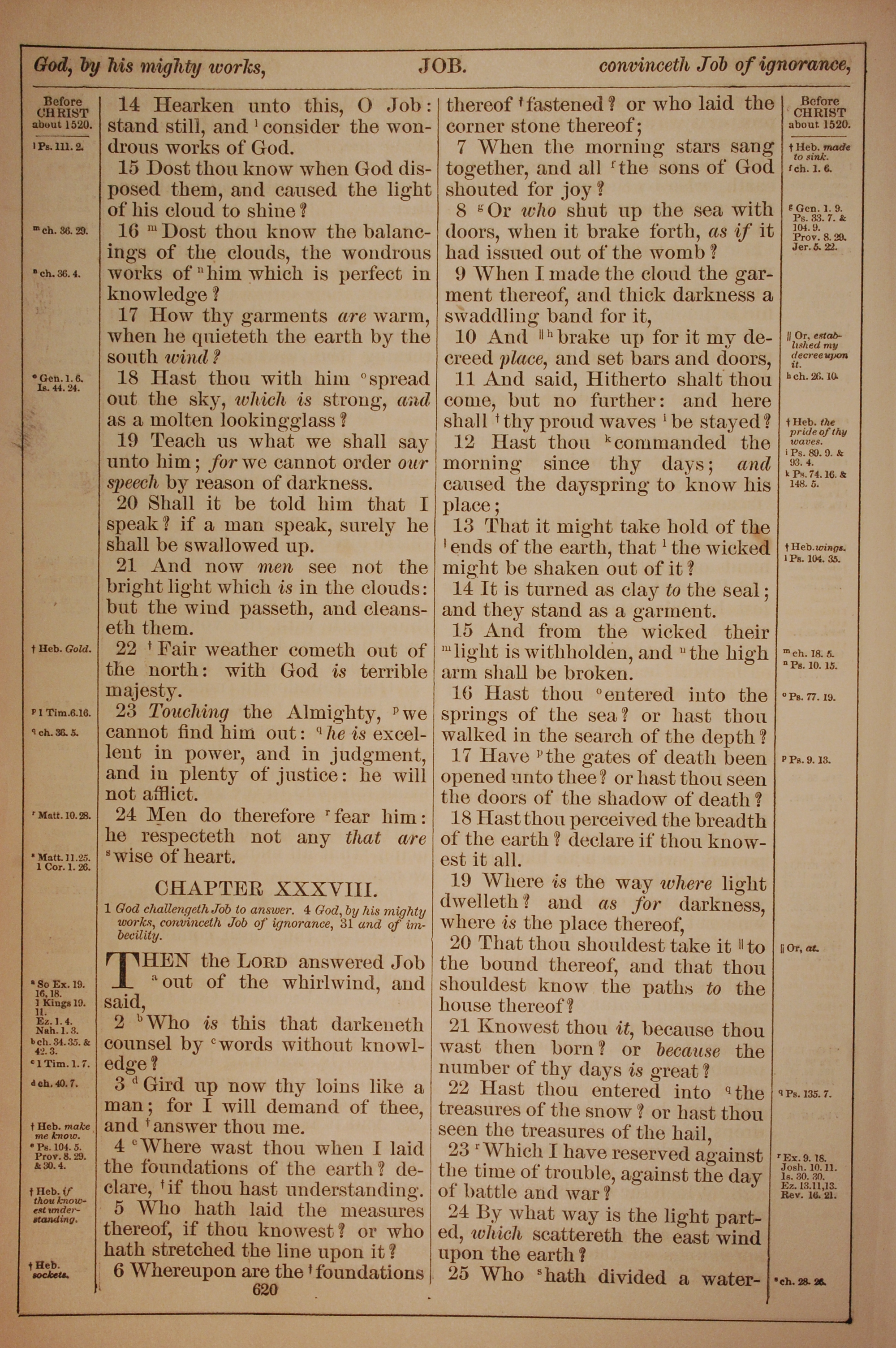 1882年Holy Bible 约伯记 37 章 14 节到 38 章 25 节