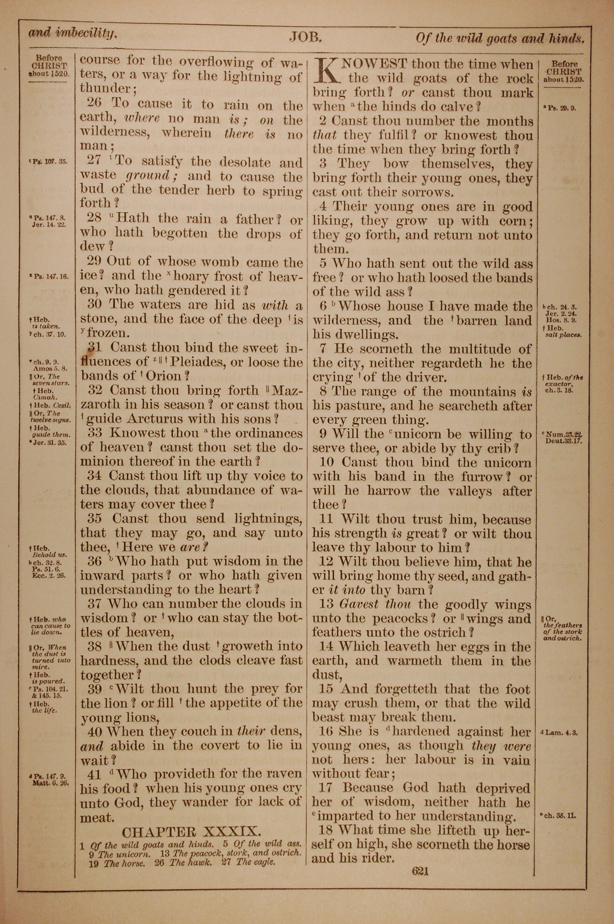 1882年Holy Bible 约伯记 38 章 26 节到 39 章 18 节