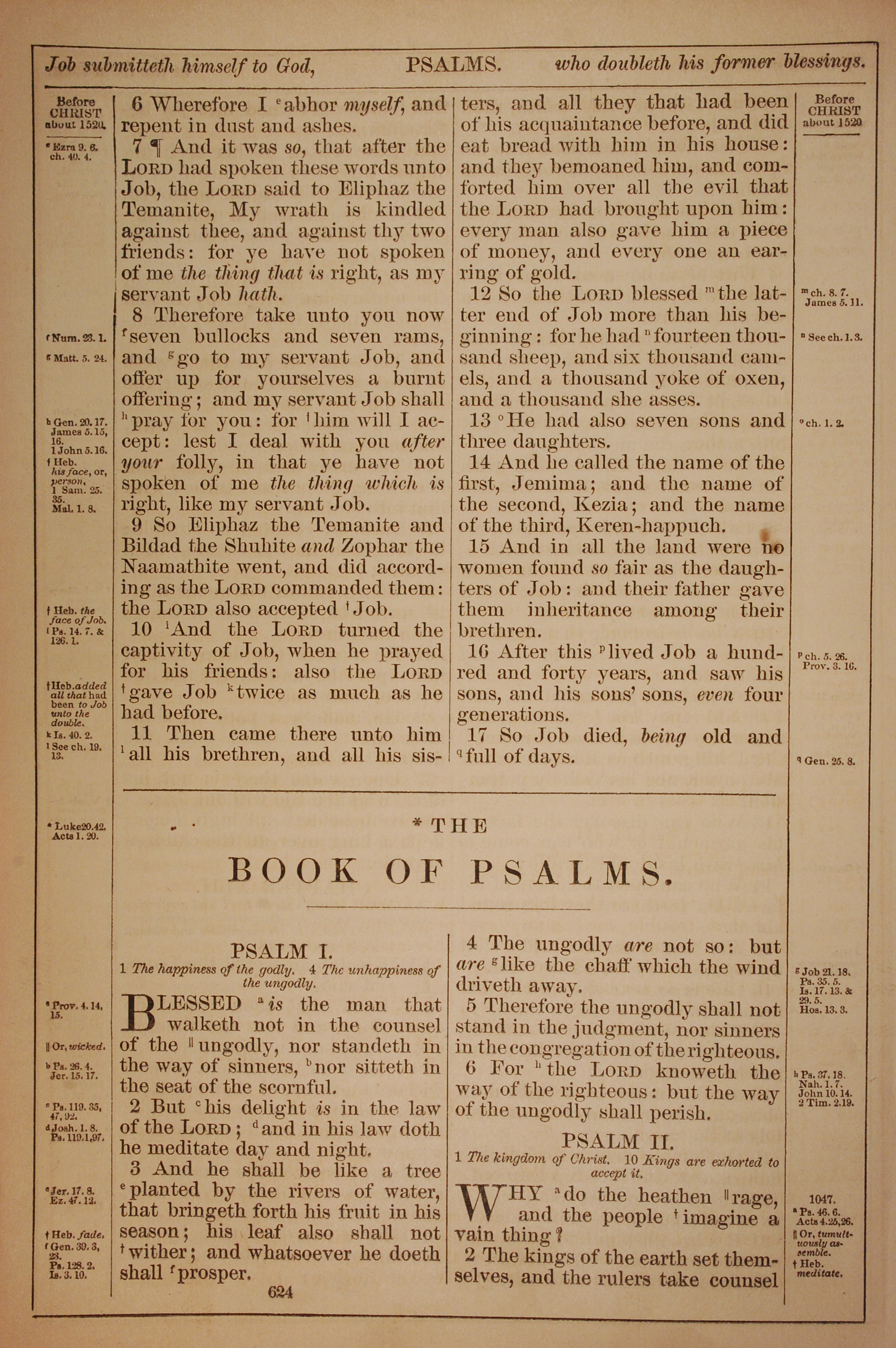 1882年Holy Bible 诗篇 1 章 1 节到 2 章 2 节