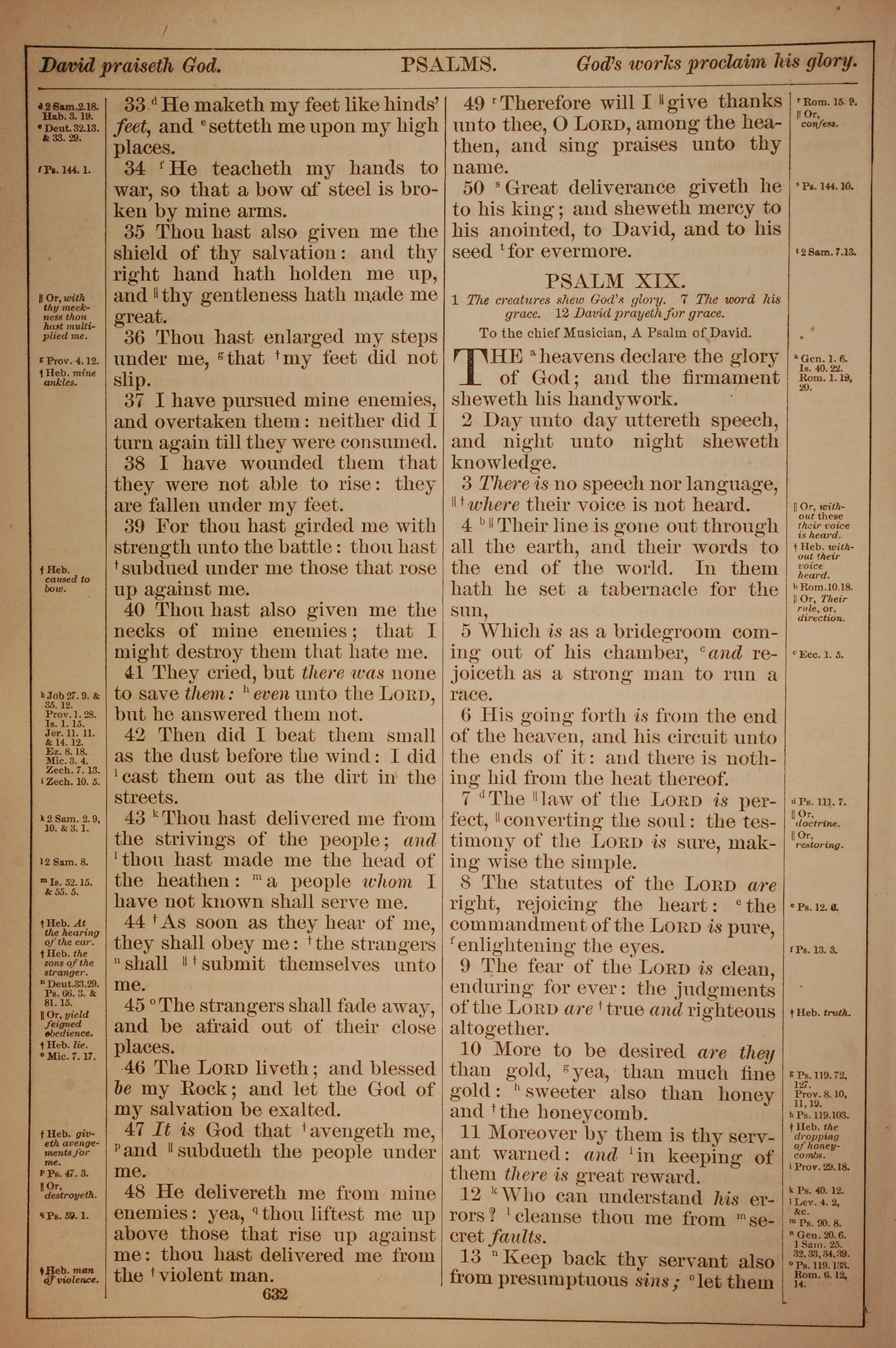 1882年Holy Bible 诗篇 18 章 33 节到 19 章 13 节