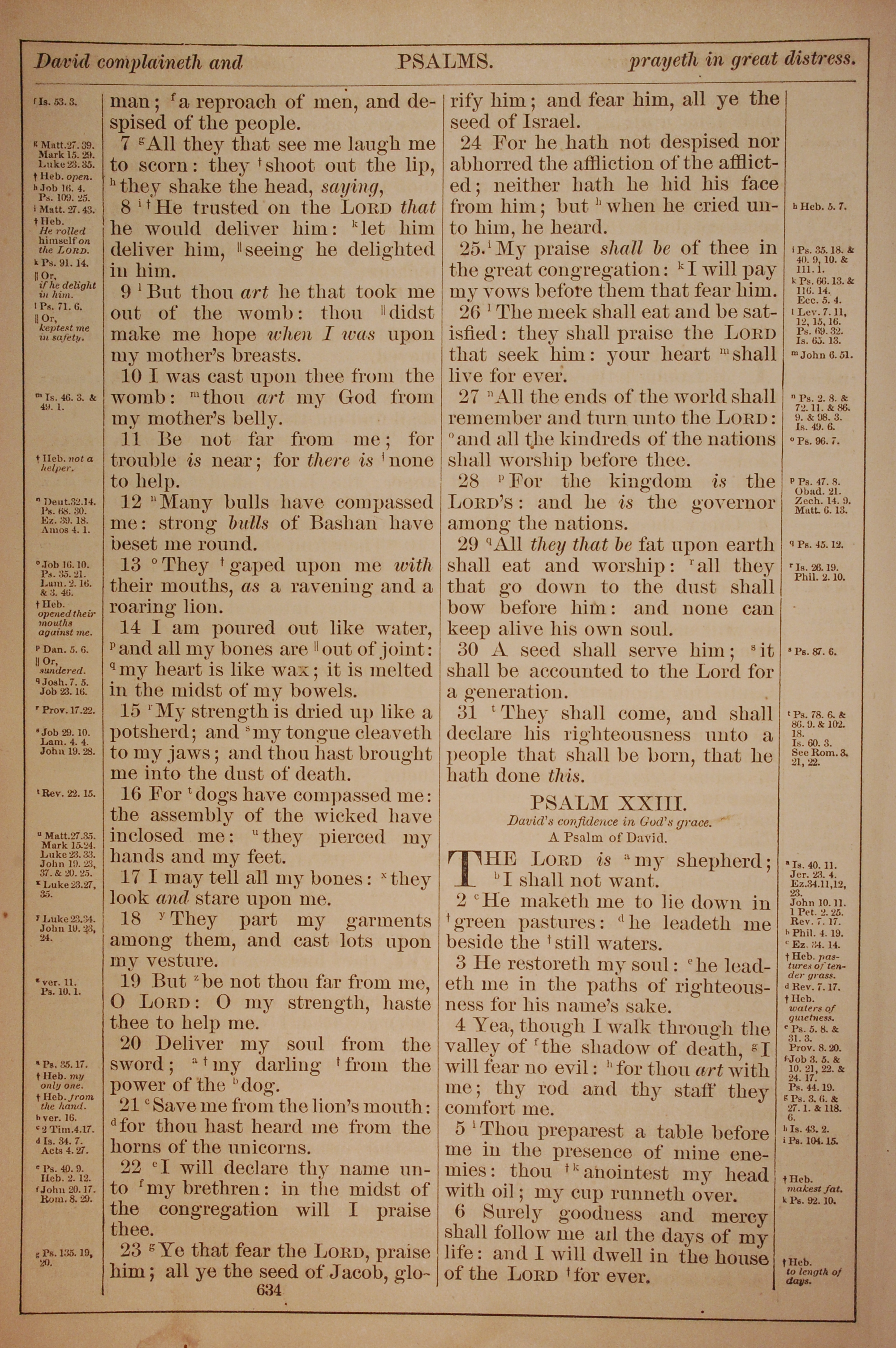 1882年Holy Bible 诗篇 22 章 7 节到 23 章 6 节