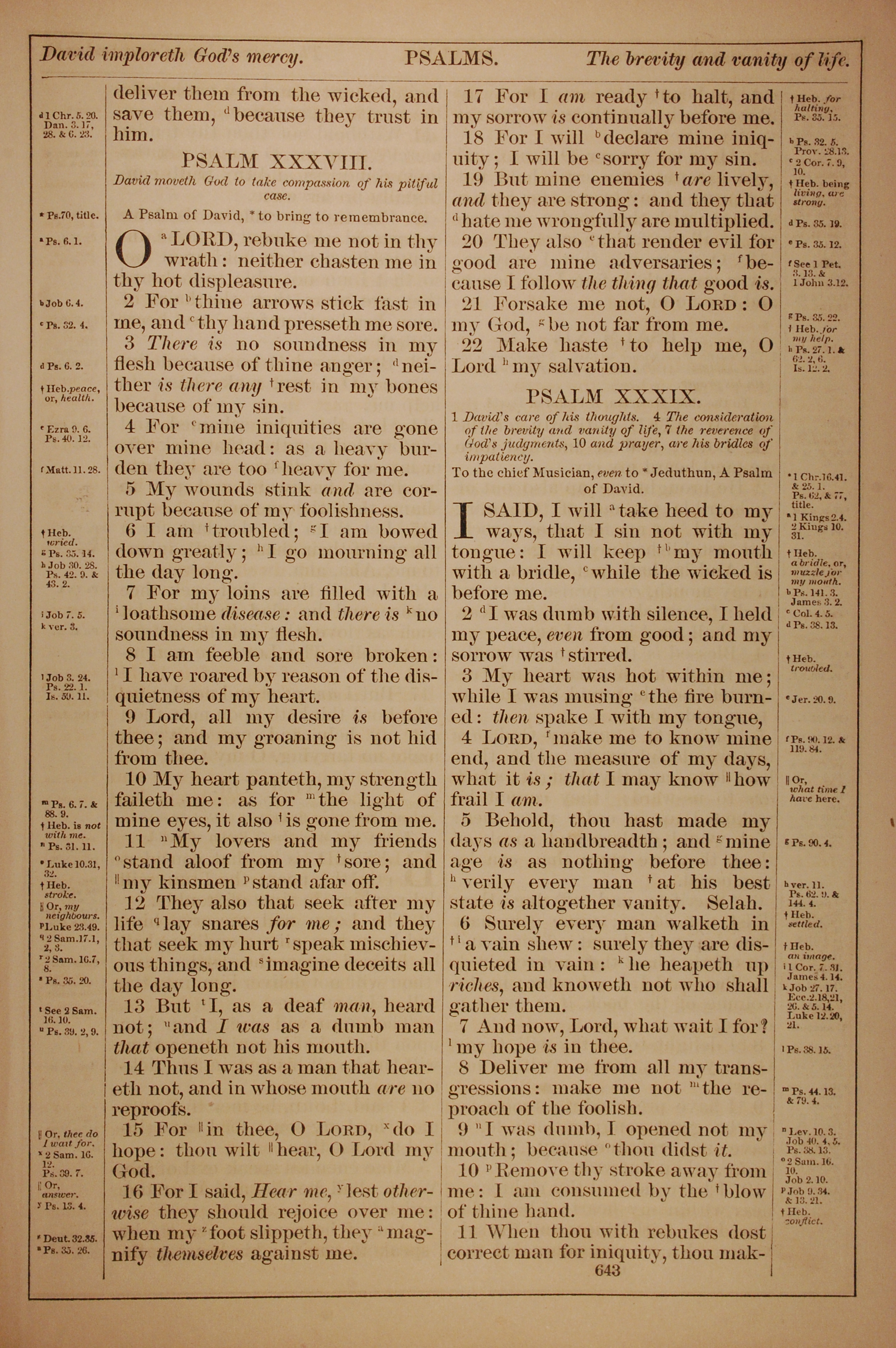 1882年Holy Bible 诗篇 38 章 1 节到 39 章 11 节